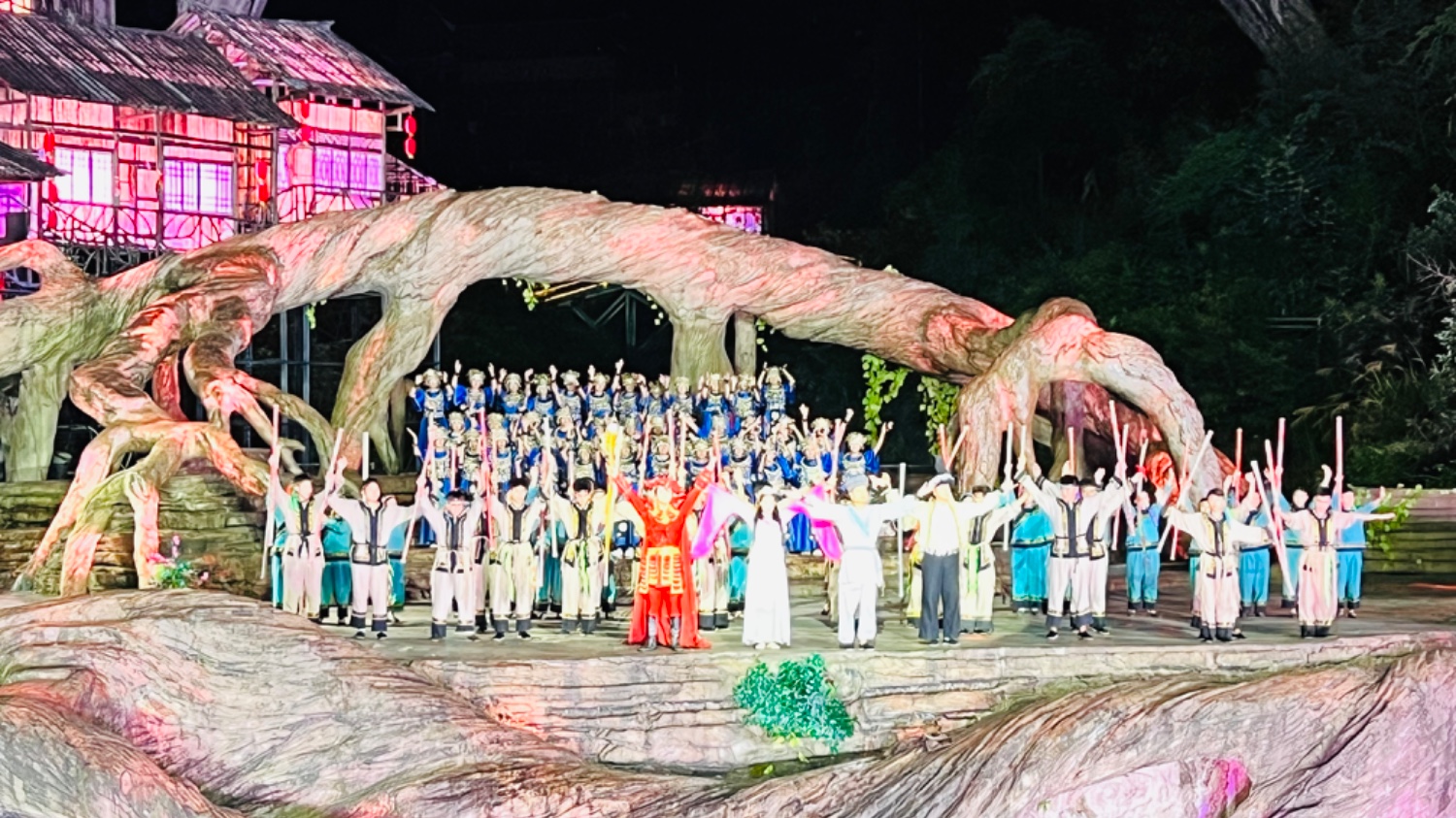 ช่วงเย็นหลังทางข้าว หลังซื้อตั๋วเข้าไปดูโชว์นางจิ้งจอก ซึ่งเวทีและพื้นที่แสดงจะเป็น outdoor ใช้เขาเทียนเหมินซานเป็น background สำหรับผมโชว์แสดงได้ดีมาก ทั้งนักแสดงร่วม 200 คนและแสง เสียง แบบจัดเต็มครับ