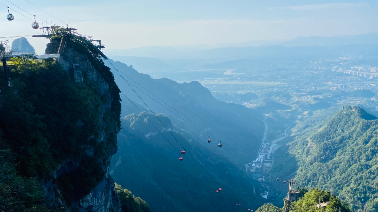 กระเช้าขาขึ้นซึ่งอยู่ใจกลางเมือง มีระยะทาง 7.5 กม. ใช้เวลาประมาณ 30 นาทีเพื่อไปถึงจุดหมาย ซึ่งครั้งนี้เราจังหวะค่อนข้างดีที่รอขึ้นกระเช้าเพียง 15 นาทีเท่านั้น (ไกด์บอกว่าถ้าพี่มาช่วงคนเยอะจะต้องรอคิวขึ้นกระเช้า 2 ชม.++ โดยเฉพาะช่วงตรุษจีน วันชาติจีน และช่วงปิดเทอมเดือนกรกฏาคม-สิงหาคม)