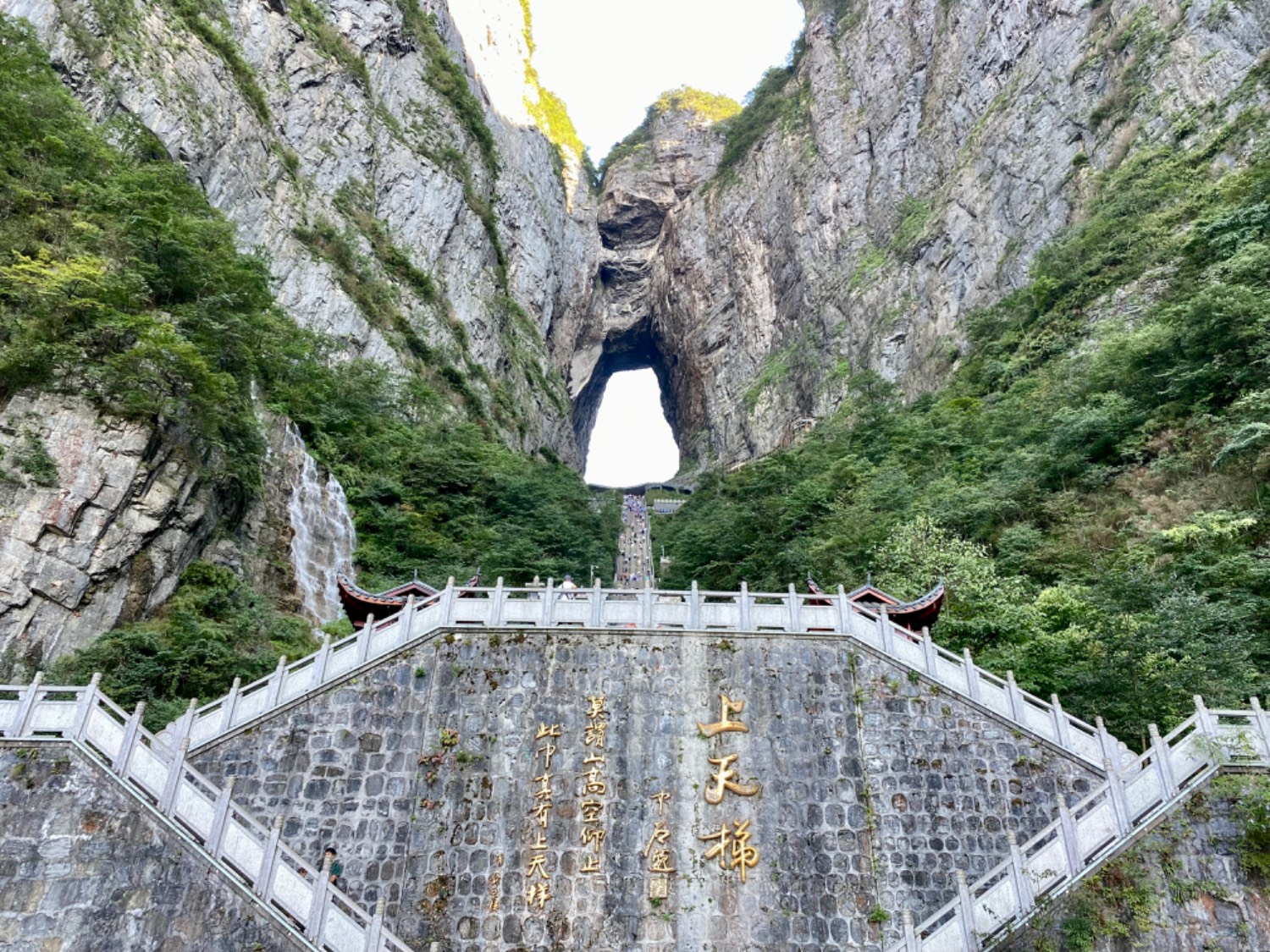 ซึ่งในแต่ละระดับใช้เวลาประมาณ 5 นาที+ ครับ เพื่อเดินต่อไปยังลานซึ่งเป็นจุดถ่ายรูปช่องประตูสวรรค์ครับ และเราสามารถลงไปที่ลานด้านล่างได้ด้วยวิธีเดินลงไป 999 ขั้น ซึ่งทั้งที่บันไดและลานกว้างด้านล่างจะมีมุมเก็บภาพได้หลายมุมเลย