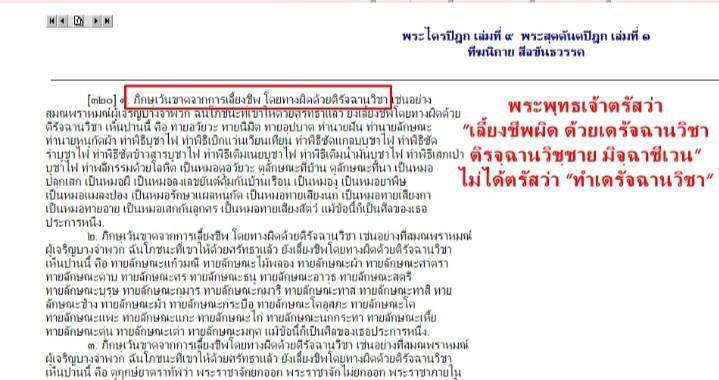 พระพุทธเจ้าตรัสว่า "เลี้ยงชีพผิด ด้วยเดรัจฉานวิชา / ติรจฺฉานวิชฺชาย มิจฺฉาชีเวน" ไม่ได้ตรัสว่า "ทำเดรัจฉานวิชา"