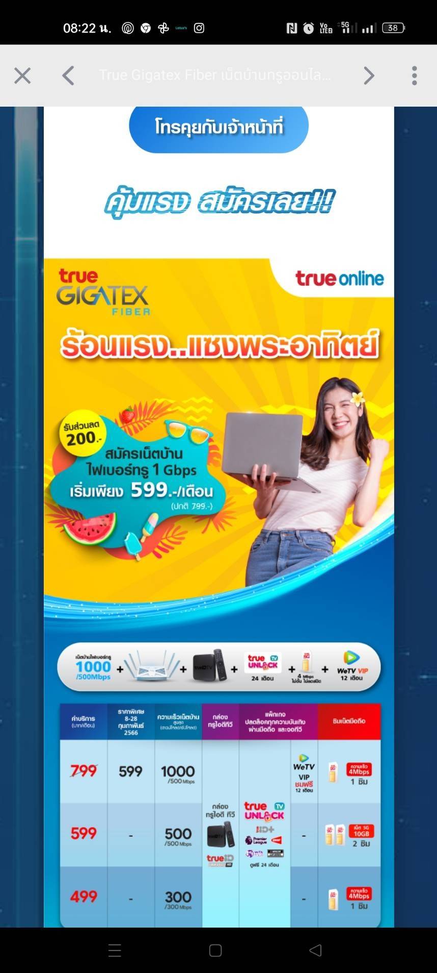 1. ช่วงเดือนมีนาคม 2566 สมัครโปร True Gigatex Pro 599 บาท/เดือน ได้ 2 ซิม ใช้มาตลอดโดยไม่มีค่าใช้จ่ายทั้ง 2 ซิม