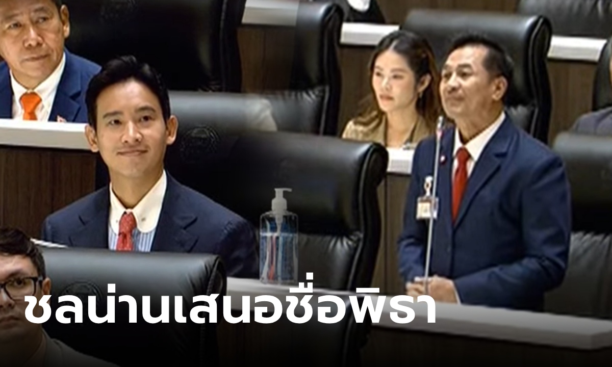 นายแพทย์ชลน่าน ศรีแก้ว ส.ส.น่าน หัวหน้าพรรคเพื่อไทย และภูมิธรรม เวชยชัย รองหัวหน้าพรรค ยืนยันมติ 8 พรรคร่วมฝ่ายประชาธิปไตย ให้ความเห็นชอบ ‘พิธา ลิ้มเจริญรัตน์’ แคนดิเดตนายกรัฐมนตรี พรรคก้า