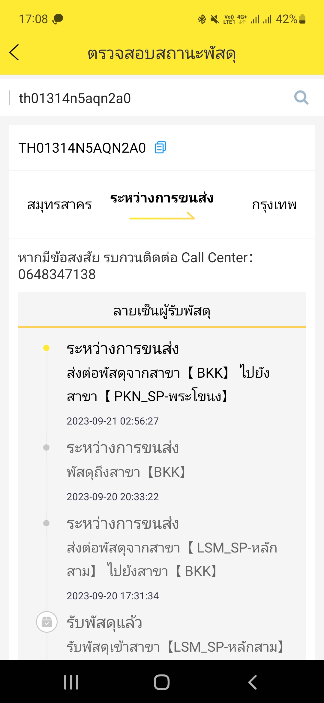 พี่ส่งของมาให้จะ3วันแล้ว ทางขนส่งflash express ยังไม่ได้รับ ปกติส่งทางไปรษณีย์ได้รับแล้ว แต่คราวนี้ส่ง flash ติดต่อก็ไม่ได้ ติดตามพัสดุแจ้งว่า อยู่ที่ 18s04HUB_นครศรีธรรมราช อยากทรายเบอร์โทรครับ