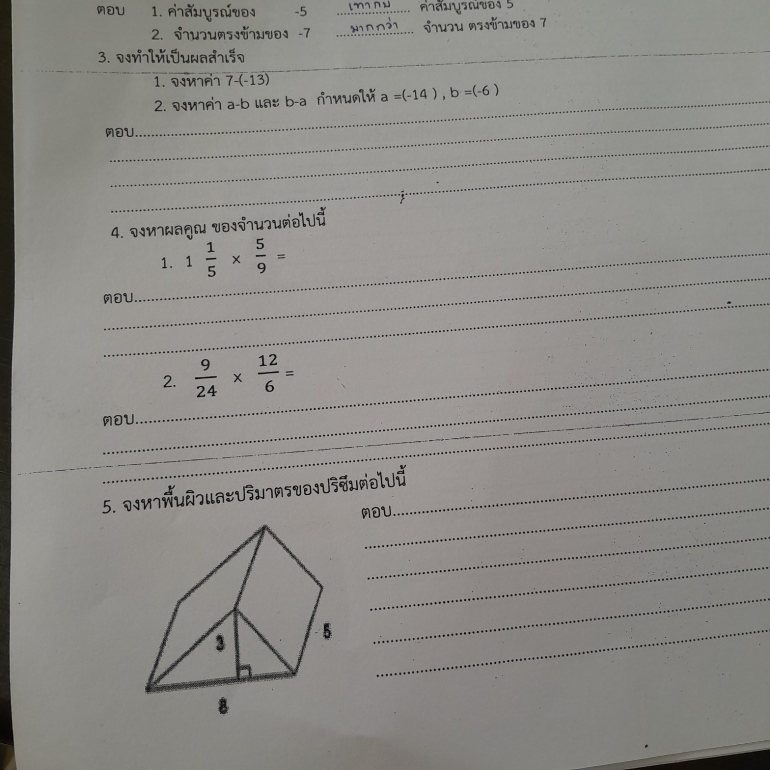 ช่วยหาคำตอบของคณิตศาสตร์หน่อยค่ะ