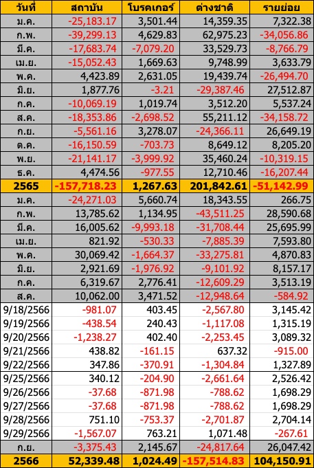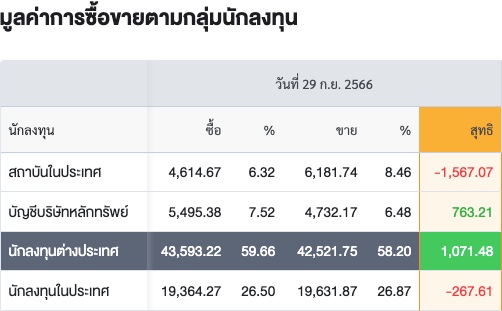 Sinthorn Summary 29/9/2566 : ต่างชาติซื้อสุทธิ 1,071.48 ลบ.