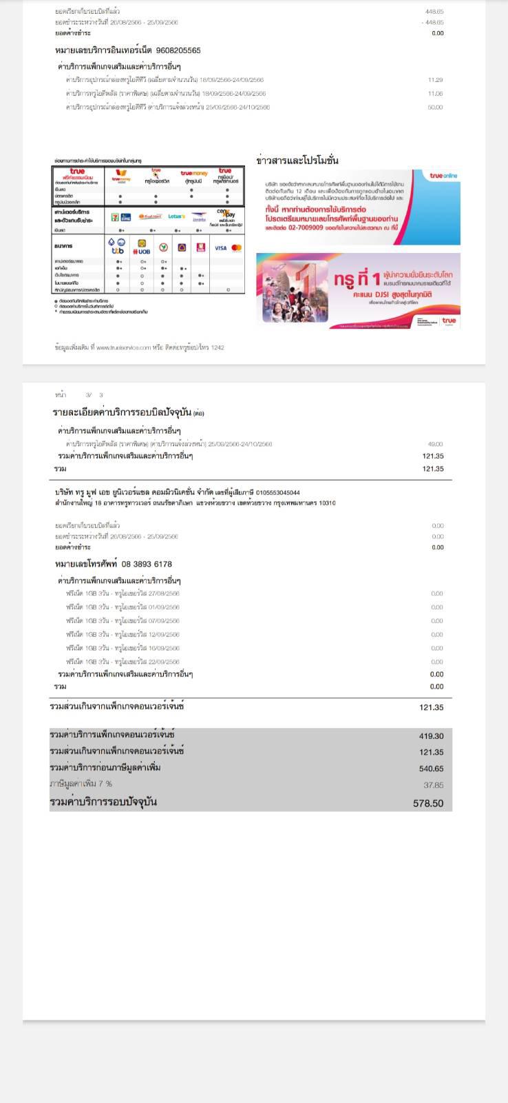 สอบถามผู้รู้เกกี่ยวกับบิลอินเตอร์เน็ตทรู