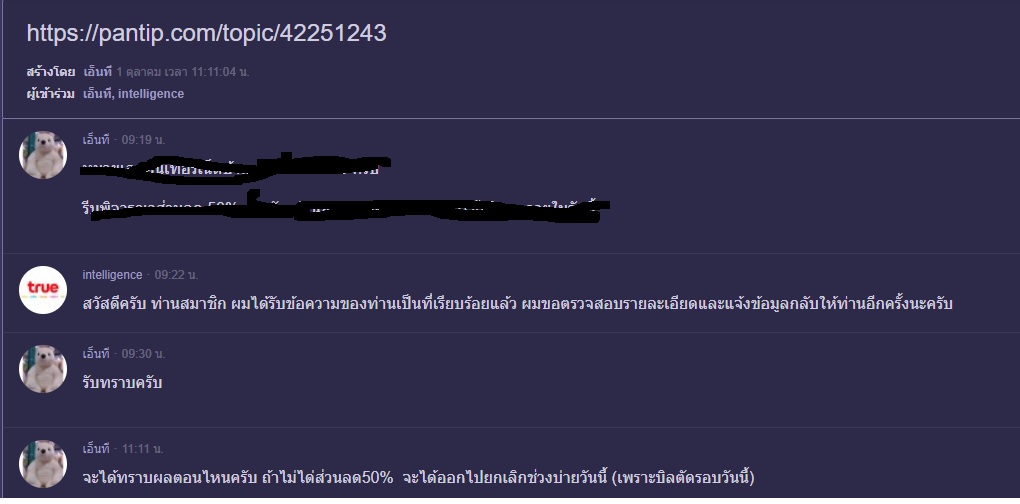 4 ชั่วโมงผ่านไป หลังไมค์ทรูก็ไม่มีคำตอบให้ ต้องการให้ไปยกเลิกจริงๆใช่ไหมครับ