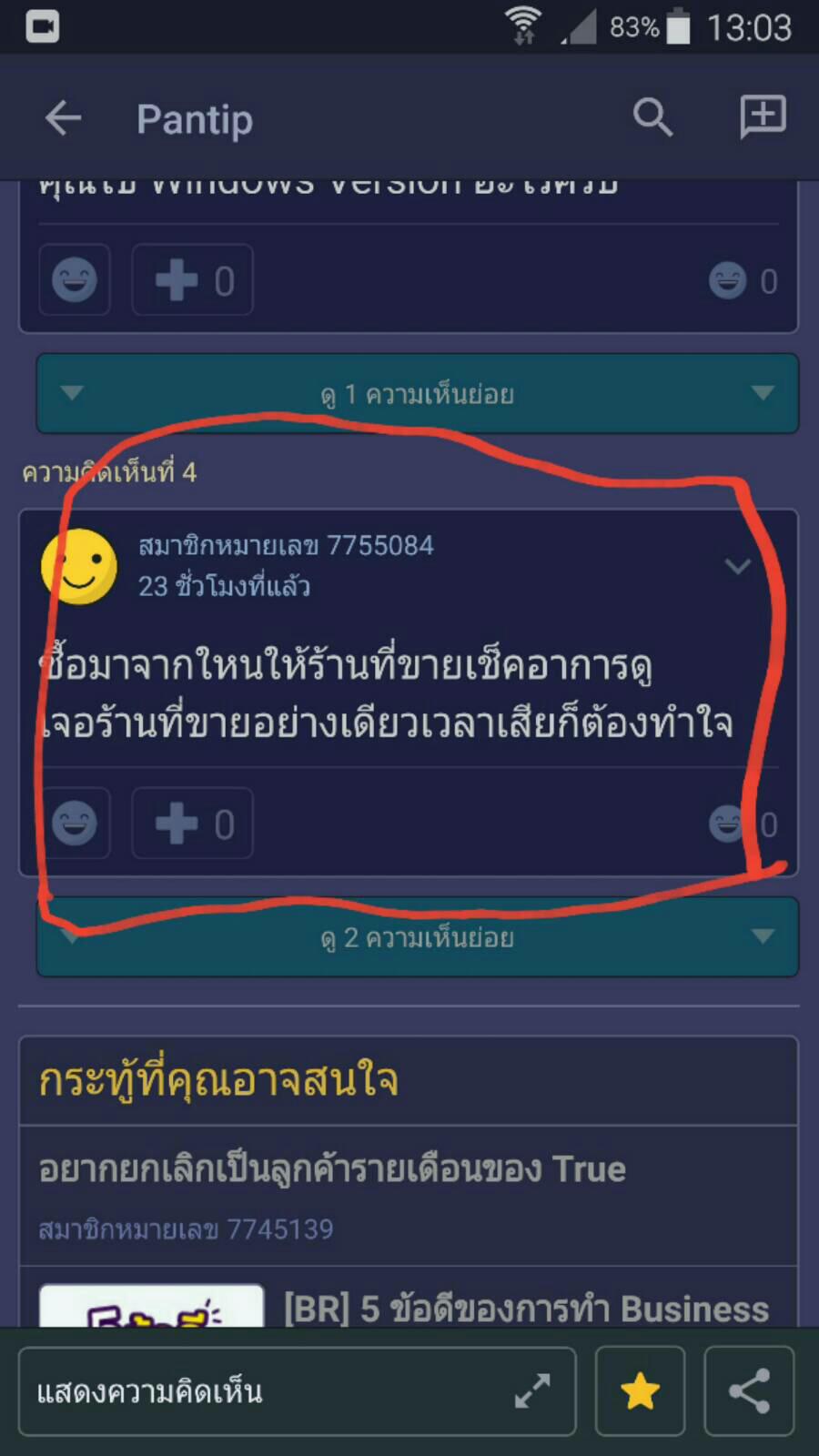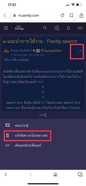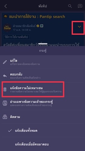 2. กดแจ้งลบตามรูปเมื่อใช้งานผ่าน Application Pantip