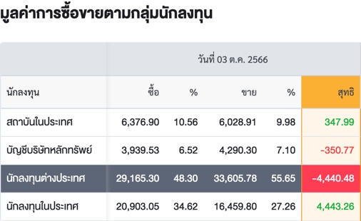 Sinthorn Summary 3/10/2566 : ต่างชาติขายสุทธิ -4,440.48 ลบ.