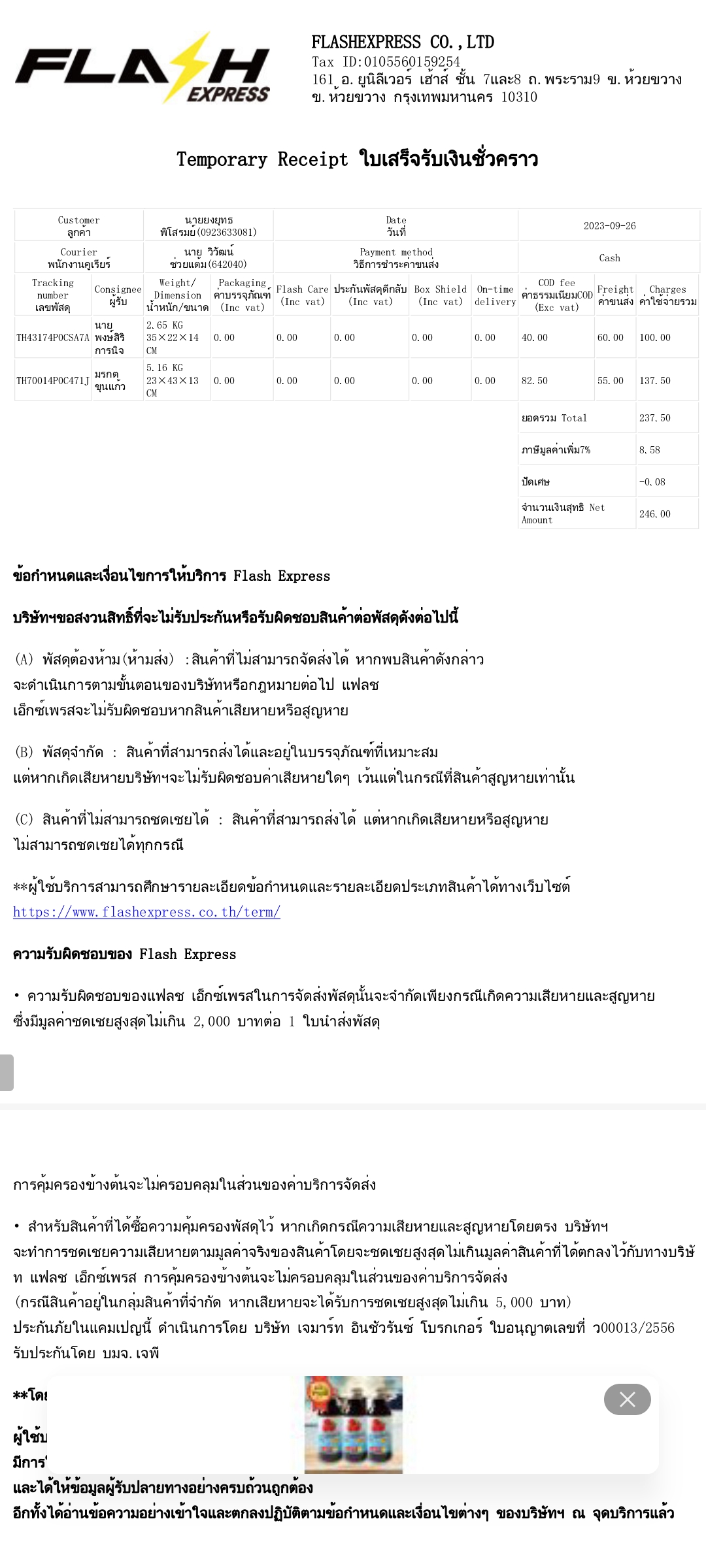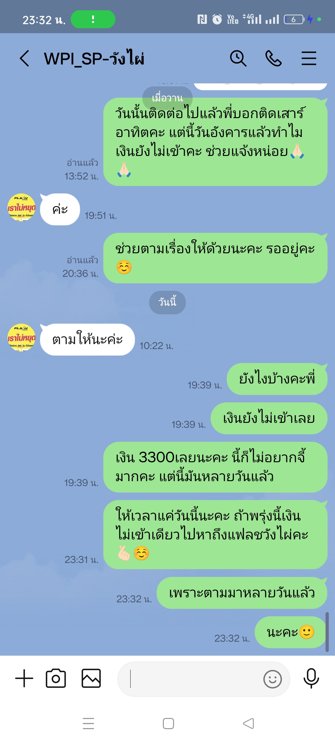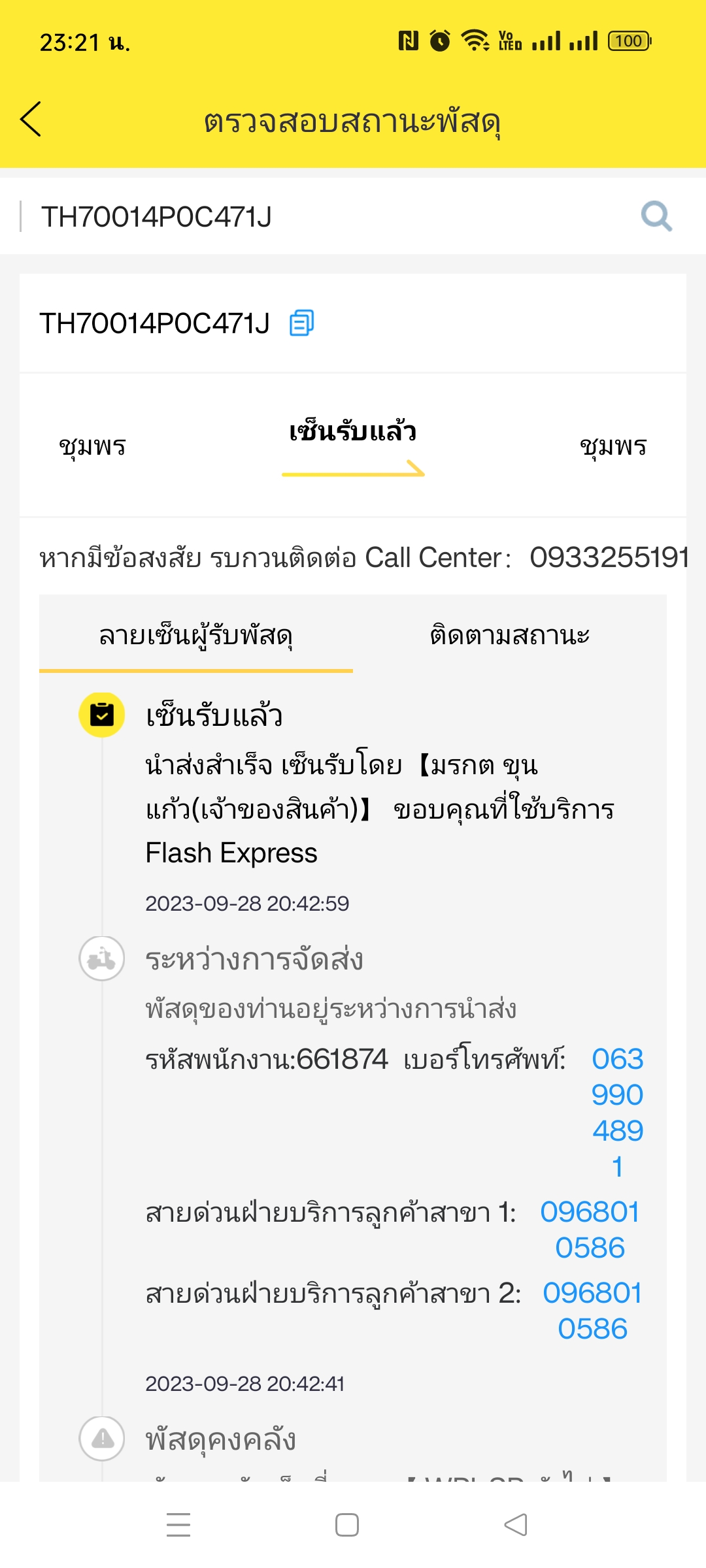 ส่งของกับ flash express แบบเก็บเงินปลายทาง ยอด COD 2300 บาท เมื่อวันที่ 22/1/68 ผู้รับได้รับของเมื่อวันที่ 23/1/68 แต่พนักงานไม่ยอมปิดงาน แจ้งสถานะในระบบว่าผู้รับขอเลื่อนไปเรื่อย ๆ เงินเลยยังไม่เข้าระ