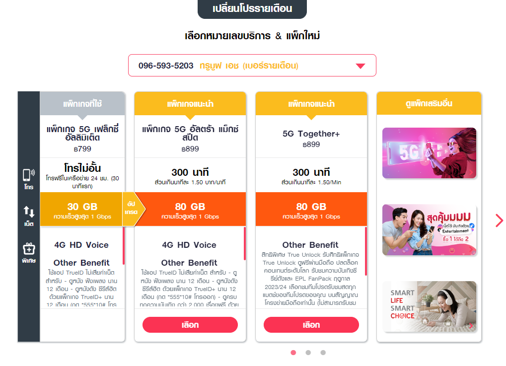 เปลี่ยนโปรรายเดือนของค่ายทรู