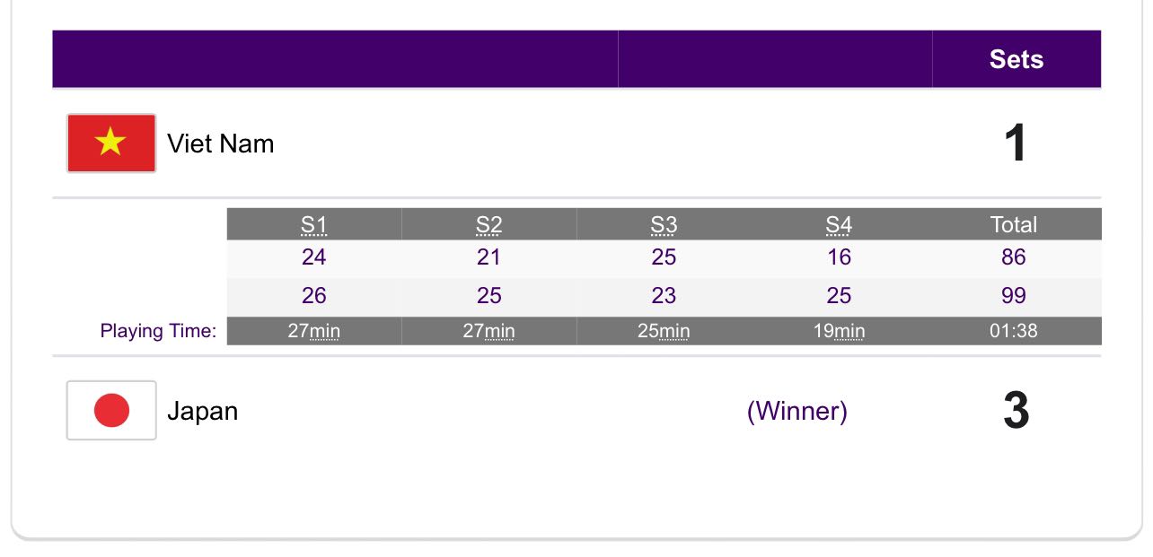 Results・✿JPN🇯🇵3:1VIE🇻🇳 | 4Tไม่ต้องแบกอีกต่อไป