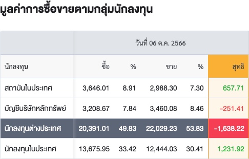 Sinthorn Summary 6/10/2566 : ต่างชาติขายสุทธิ -1,638.22 ลบ.