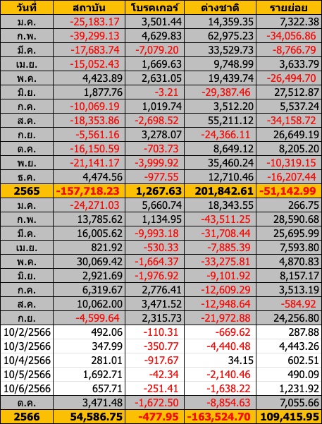 Sinthorn Summary 19/11/2566 : ต่างชาติชายสุทธิ -1,615.42 ลบ.