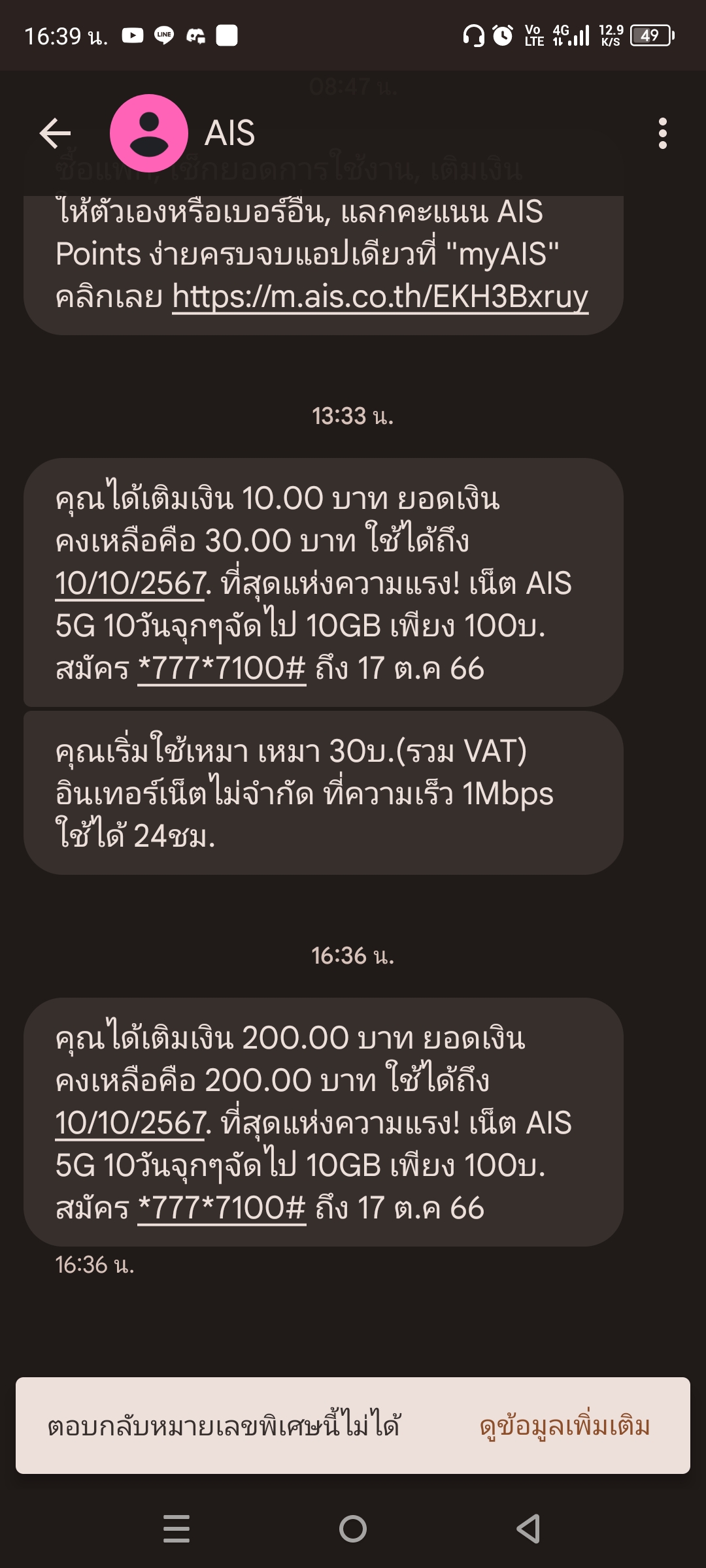 เงินมือถือหายais