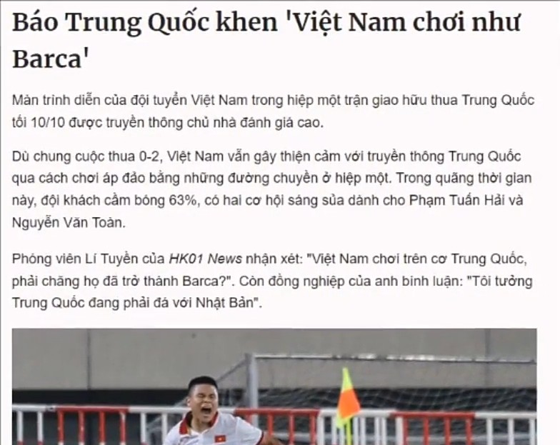 สื่อเวียดนามประโคม " จีนทึ่ง นึกว่ากําลังเล่นกับบาร์ซ่า ไม่ใช่เวียดนาม"