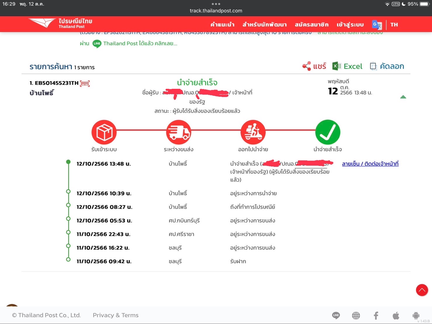 #ไปรษณีย์ไทย ยังไม่รับของ แต่มีคนเซ็นรับแล้ว จะได้ของไหมครับ ขอบคุณครับ