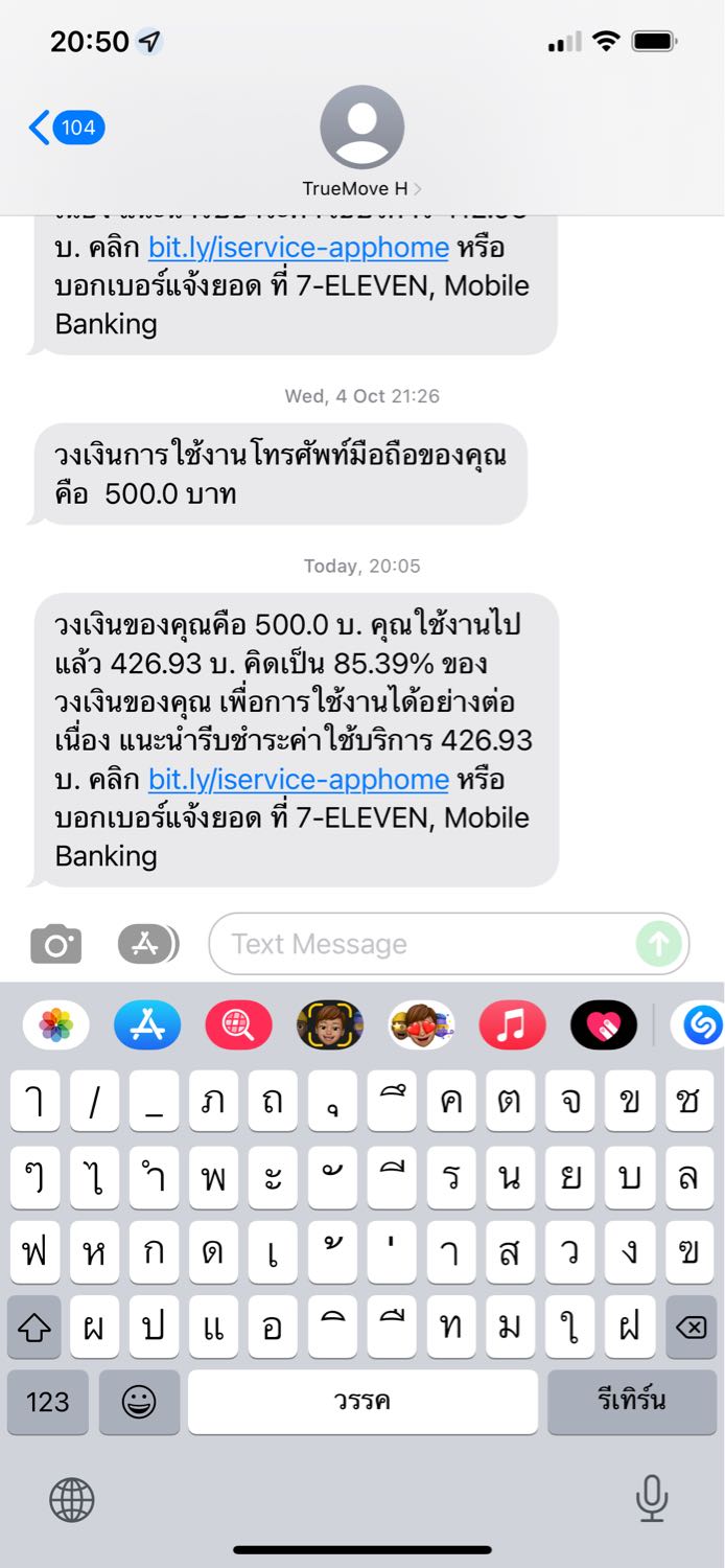 สงสัยว่าวงเงินในทรูนี่หักจากการใช้แพคเสริมใช่ไหมคะ วันนี้มีแจ้งเตือน SMS บอกว่าวงเงินใช้ไปแล้ว 1124.26 บ. แนะนำให้ชำระ ในส่วนของแพคเสริมที่เรามีคือเหมือนแถมมาตอนเปลี่ยนแพคหลัก แล้วในบิลรายเดือนไม่มีก