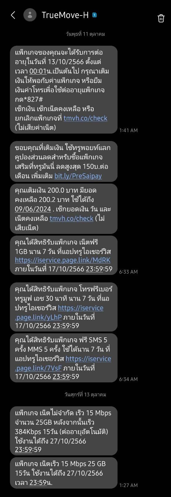 ผมเป็นลูกค้าทรูมูฟจะเกิน 10 ปี จ่ายเงินตรงตลอด ผมใข้แพคเกจ อินเตอรเน◌็ตบ้านและมือถือ ตอนแรกน่าจะประมาณ 600 บาท ต่อๆ มาบางเดือน ผมใช้แพคเกจเสริม ก็มีค่าใช้จ่ายมาก ก็เป็นไปตามนั้น แต่มาหลังๆ บ้างเดือน