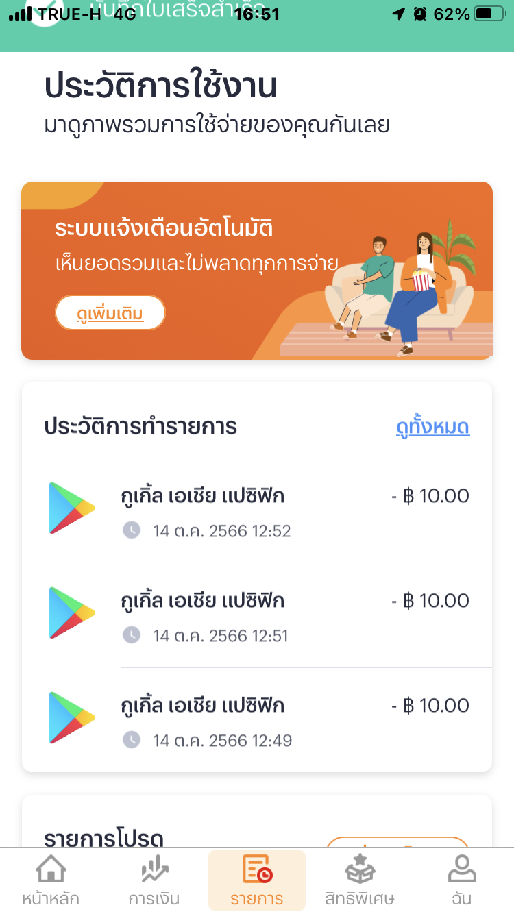 อยู่ดีๆก็โดนหักตังไปจากแอปทรูวอเล็ต3ครั้งมีใครรู้ไหมว่าเช็คตรงไหนว่าโดนหักไปค่าอะไร