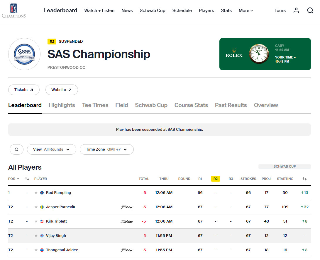 เชียร์สดกอล์ฟชาย PGA Tour Champions รายการ SAS Championship วันที่ 2