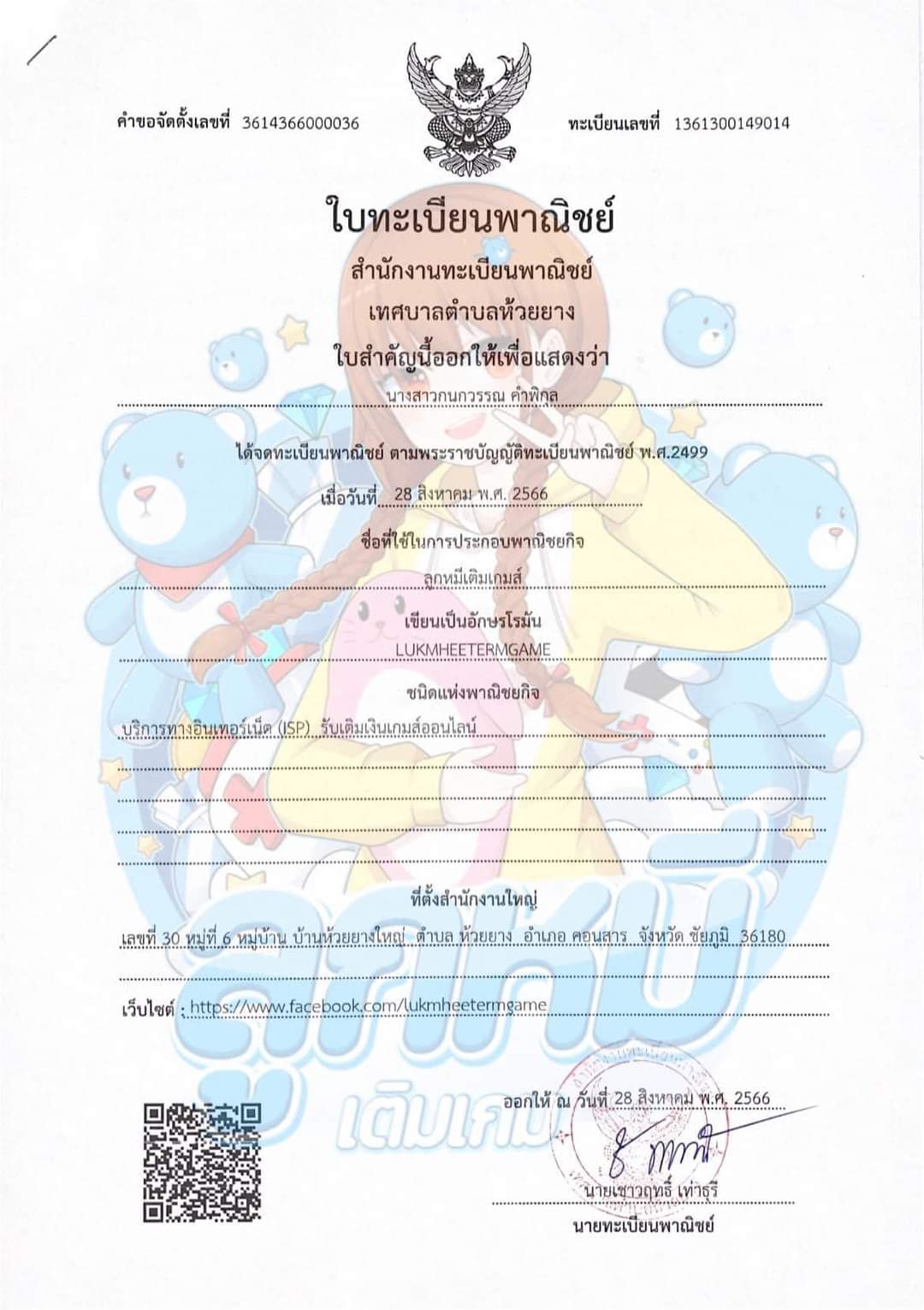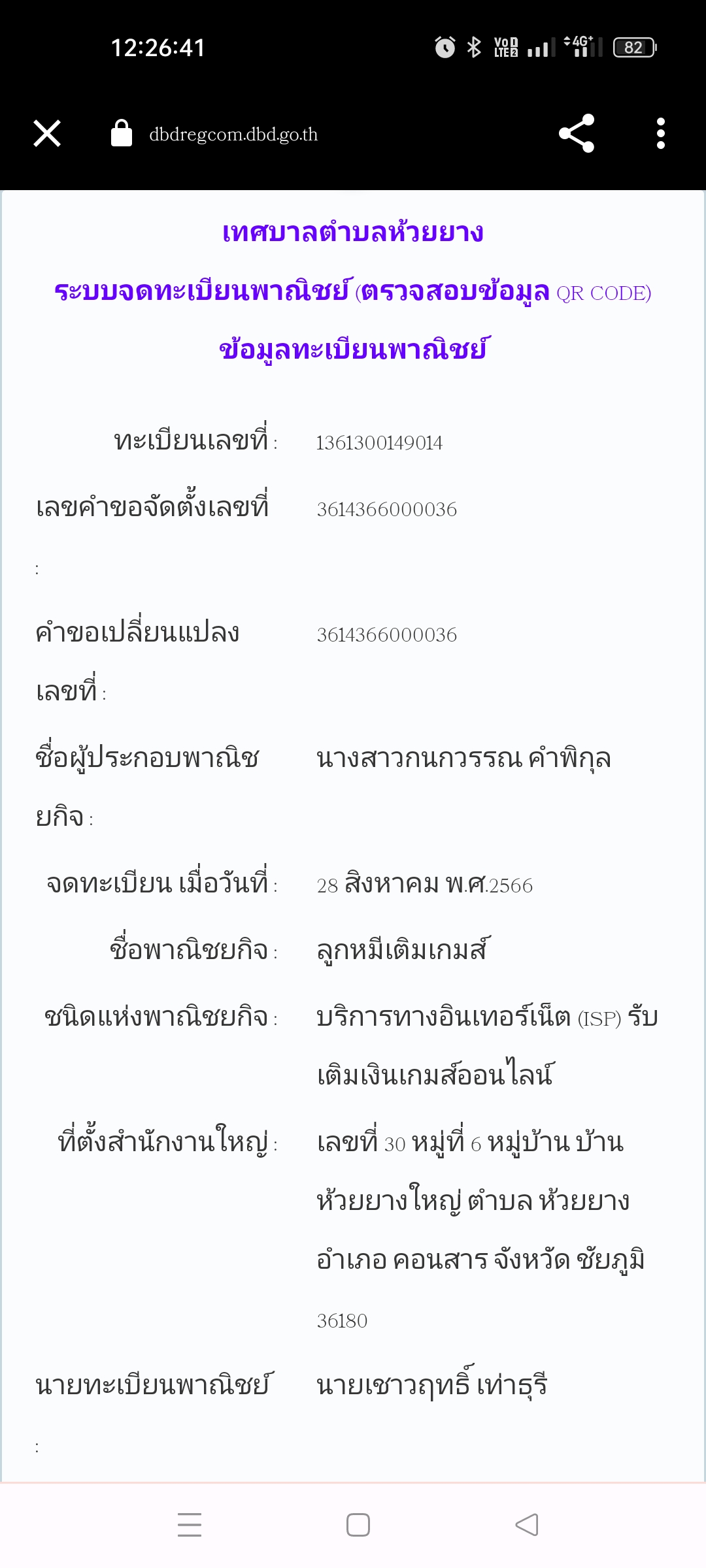 ไช่ร้านที้จดทะเบียนพาณิชย์จริงไหมครับ ผมค้นหา แล้วไม่เจอ เขาบอกให้สแกนคิวฮาโค้ดดูมันก็ขึ้นเหมือนเว็บไซต์ที่สร้างเอง