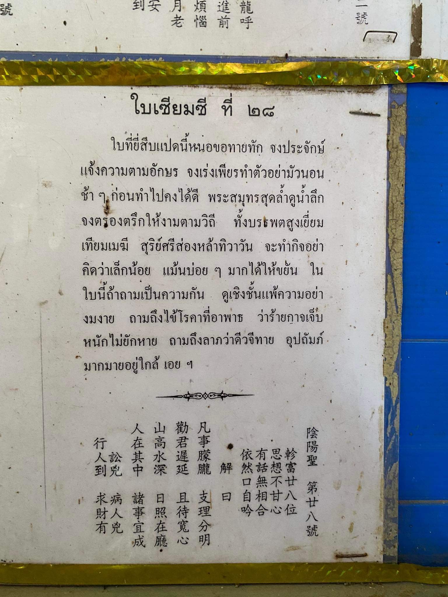 ช่วยแปลใบเซียมซีให้หน่อยครับ ขอบคุณนะครับ