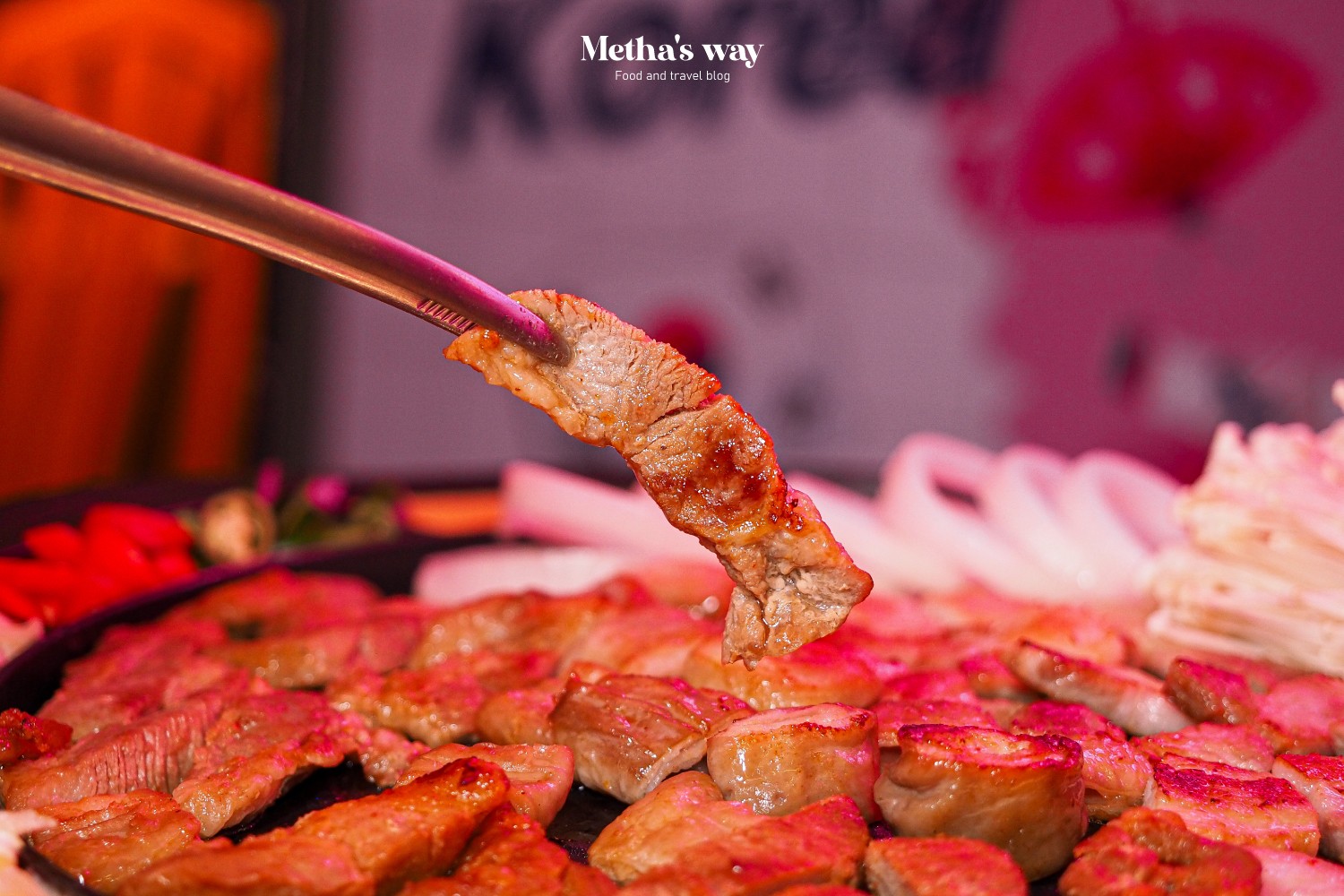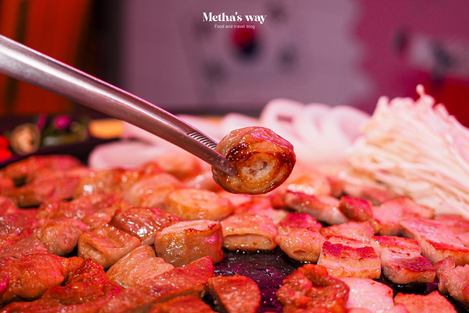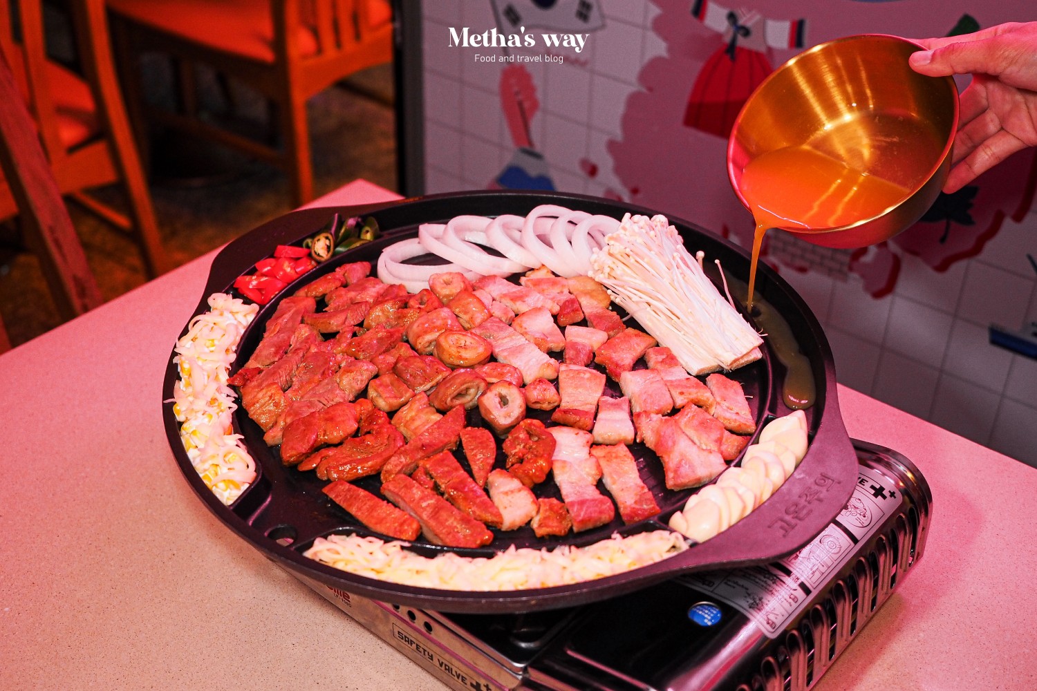สายอาหารเกาหลีอยากให้ลองแวะมาที่นี่ ร้านแอบอยู่ชั้น 2 ของโรงแรมสำราญเพลส ราชเทวี เดินผ่านตอนกลางคืนจะเห็นแสงไฟเด่นๆ ออกมาแบบนี้