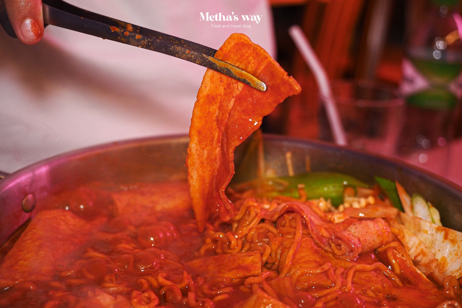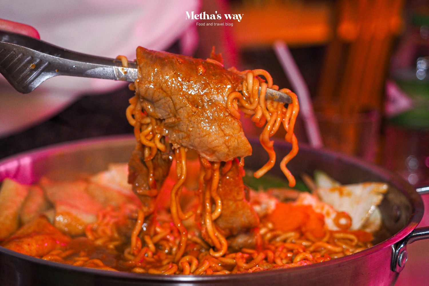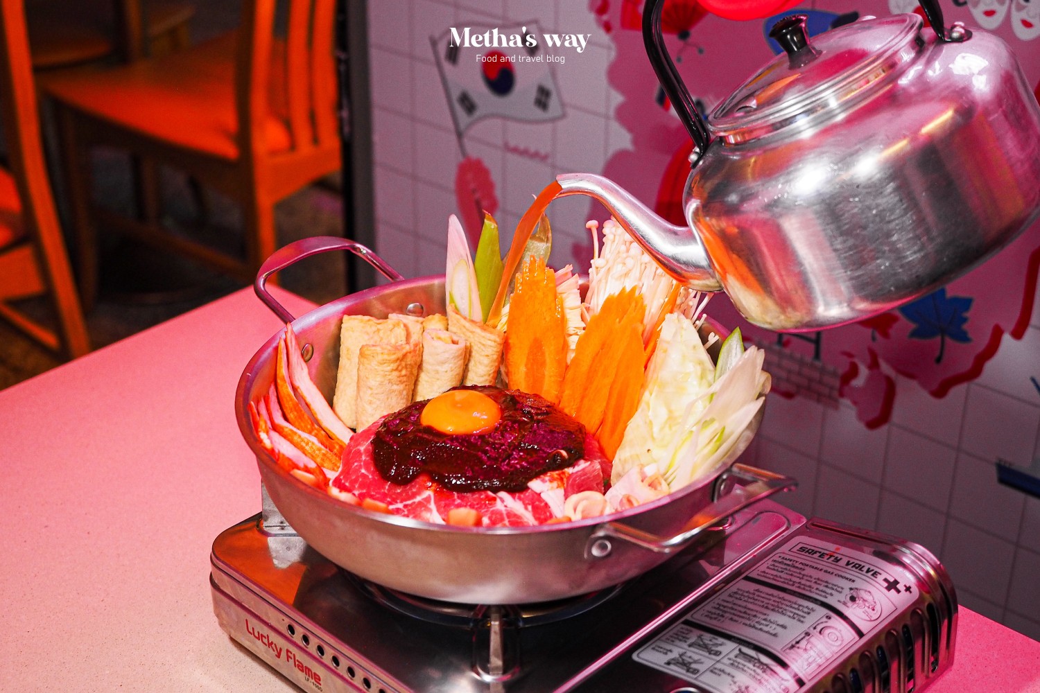 สายอาหารเกาหลีอยากให้ลองแวะมาที่นี่ ร้านแอบอยู่ชั้น 2 ของโรงแรมสำราญเพลส ราชเทวี เดินผ่านตอนกลางคืนจะเห็นแสงไฟเด่นๆ ออกมาแบบนี้