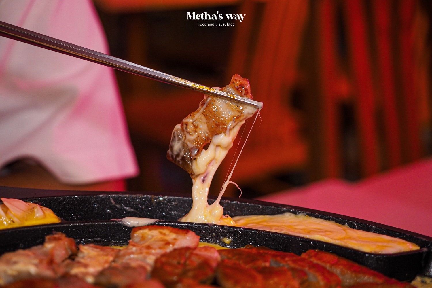 นอกจากหมูย่าง และไส้แล้ว ข้างๆ กระทะจะมีชีสยืดให้ดิปกินกับหมูด้วยนะ แล้วชีสที่นี่คืออร่อย กลิ่นหอม ใครชอบกินชีสกับหมูต้องมาลองร้านนี้ มันกลิ่นชัดจริงๆ