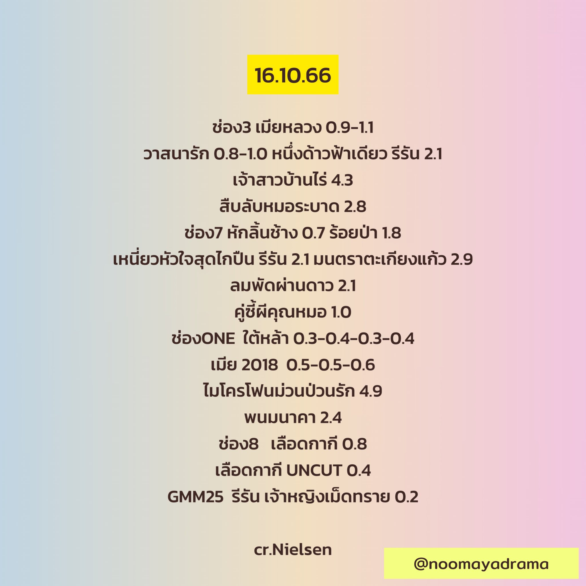 เรตติ้งละคร 16 ตุลาคม
