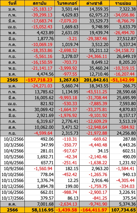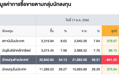 Sinthorn Summary 17/10/2566 : ต่างชาติขายสุทธิ -841.25 ลบ.