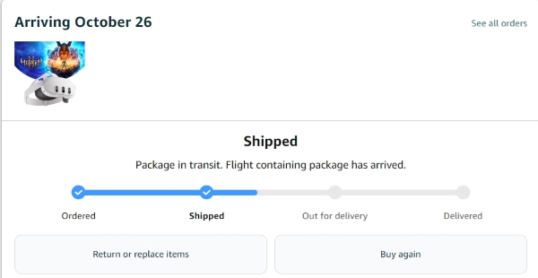 แต่รอบนี้ เลือก Meta Quest3 ใส่ตะกร้าเรียบร้อย มีการคิดค่าส่ง ค่านำเข้า ค่าต่าง ๆ ให้เสร็จสรรพ บวกจากราคา อ่านดูแล้ว เหมือนจะจัดการทุกอย่างให้เบ็ดเสร็จ ถ้าสุดท้ายจะโดนค่าอะไรเพิ่ม ก็ถือว่าเป็นค่าเรียนรู้ไปละกัน ดูจากวันส่งที่ขึ้นมาว่า ถ้าสั่งวันนี้ (11 ตุลาคม) จะส่งถึงเมืองไทยวันที่ 26 ตุลาคม ก็พอไหวอยู่ 2 อาทิตย์ ระหว่างของเดินทาง ก็หาไรทำไปพลาง ๆ ไม่ให้ว้าวุ่น