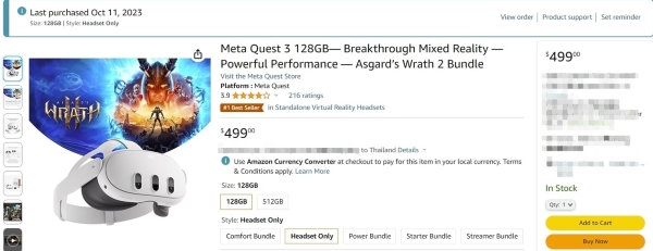 และแล้วเมื่อ 10 ตุลาที่ผ่านมา Meta Quest 3 ก็วางขาย แต่สถานการณ์แตกต่างจากตอน Quest 2 และ Pico4 คืออยากได้ตั้งแต่ Day 1 อยากเล่นพร้อม ๆ กับคนในอเมริกา คนในญี่ปุ่น คนในประเทศที่มี Meta Store ก็ Search ดูของไทยก่อน ปรากฏว่าไม่มีร้านไหนมี แล้วก็เอ๊ะขึ้นมาว่าแล้วถ้าบินไปซื้อที่มาเล สิงคโปรล่ะจะมีไหม จากที่ Search ก็ไม่มีเช่นกัน