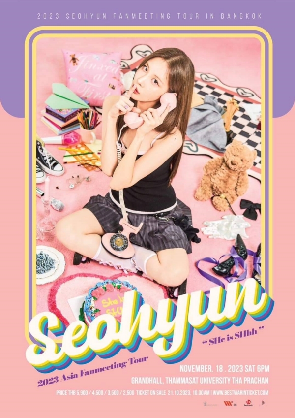 “ซอฮยอน” ทั้งอ้อน ทั้งสดใส และน่ารักขนาดนี้ โซวอนต้องห้ามพลาด วอร์มนิ้วกันให้พร้อมเตรียมกดบัตรพร้อมกันในวันเสาร์ที่ 21 ตุลาคมนี้ เวลา 10.00 น. ทาง www.BESTWARINTIKET.com ราคาบัตร 5,900 / 4,500 / 3,500 / 2,500 บาท และสิทธิ์พิเศษสำหรับโซวอนไทย ได้ HI-BYE ทุกที่นั่ง แล้วมาพบกับ “ซอฮยอน” กันได้ในงาน 2023 SeoHyun Fan meeting tour in Bangkok <SHe is SHhh> ในวันเสาร์ที่ 18 พฤศจิกายน 2566 ณ หอประชุมใหญ่ มหาวิทยาลัยธรรมศาสตร์ ท่าพระจันทร์