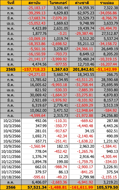 Sinthorn Summary 18/10/2566 : ต่างชาติซื้อสุทธิ 2,799.98 ลบ.