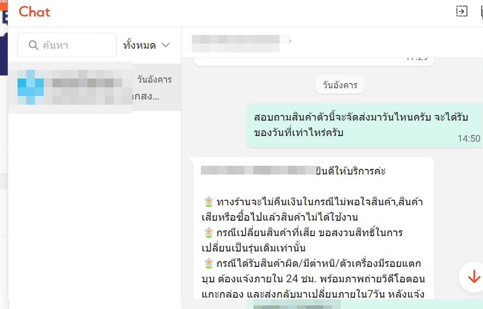 พอผ่านมาสักพักเลยลองสอบถามดูว่าจะได้ของประมาณวันไหน
