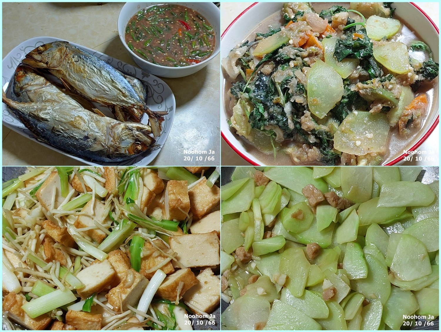 รายการอาหารวันนี้ ปลาทูน้ำพริกกะปิ..คั่วแค..รากชูเต้าหู้ปลา..ผัดฟักแม้ว พออยู่พอกินตามอัตภาพ เพื่อนเป็นอย่างไรกันบ้าง ที่เจ็บป่วยทุเลาลงหรือยัง เดินทางไกลให้ระมัดระวังฝนฟ้า ใส่ใจดูแลตนเองออกกำลังกายบ้าง ขอให้โชคดี
