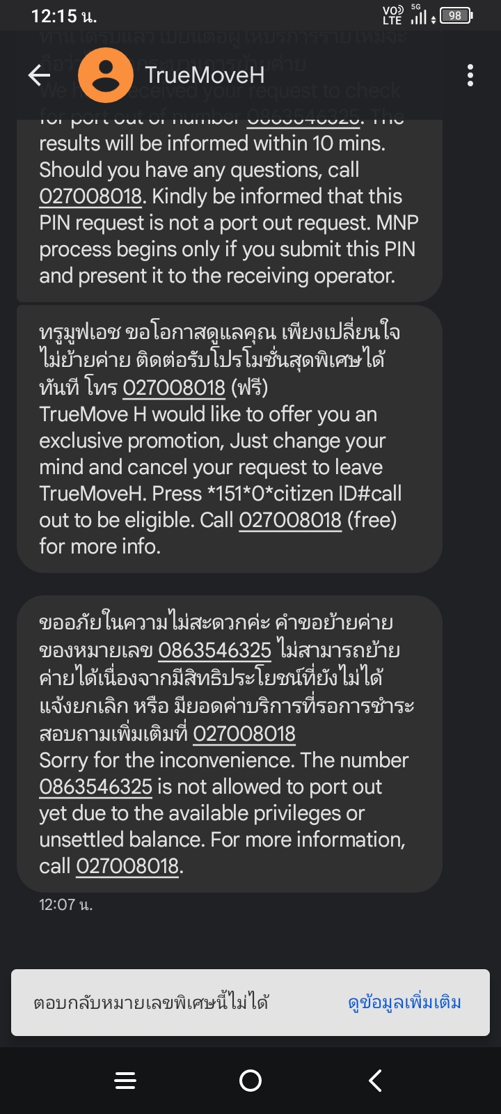 ทำไมถึงย้ายค่ายไม่ได้ครับ ค่าบริการก็ไม่ได้ค้าง จ่ายหมดแล้ว หรือต้องเสียเวลาไปที่ศูนย์บริการ