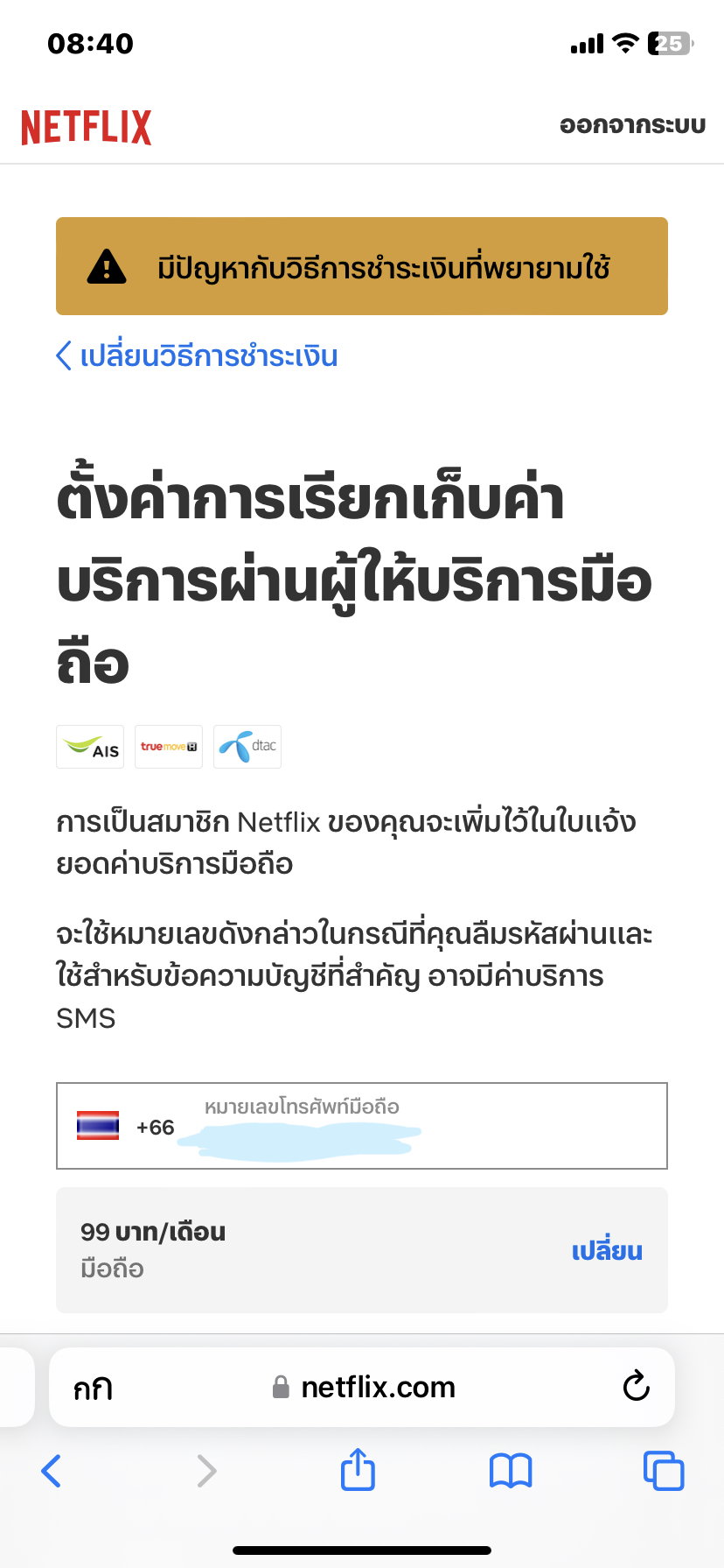 พอดีจะใช้เบอร์จ่ายดูnetflix มันจ่ายไม่ได้ทำไงดีค่ะ