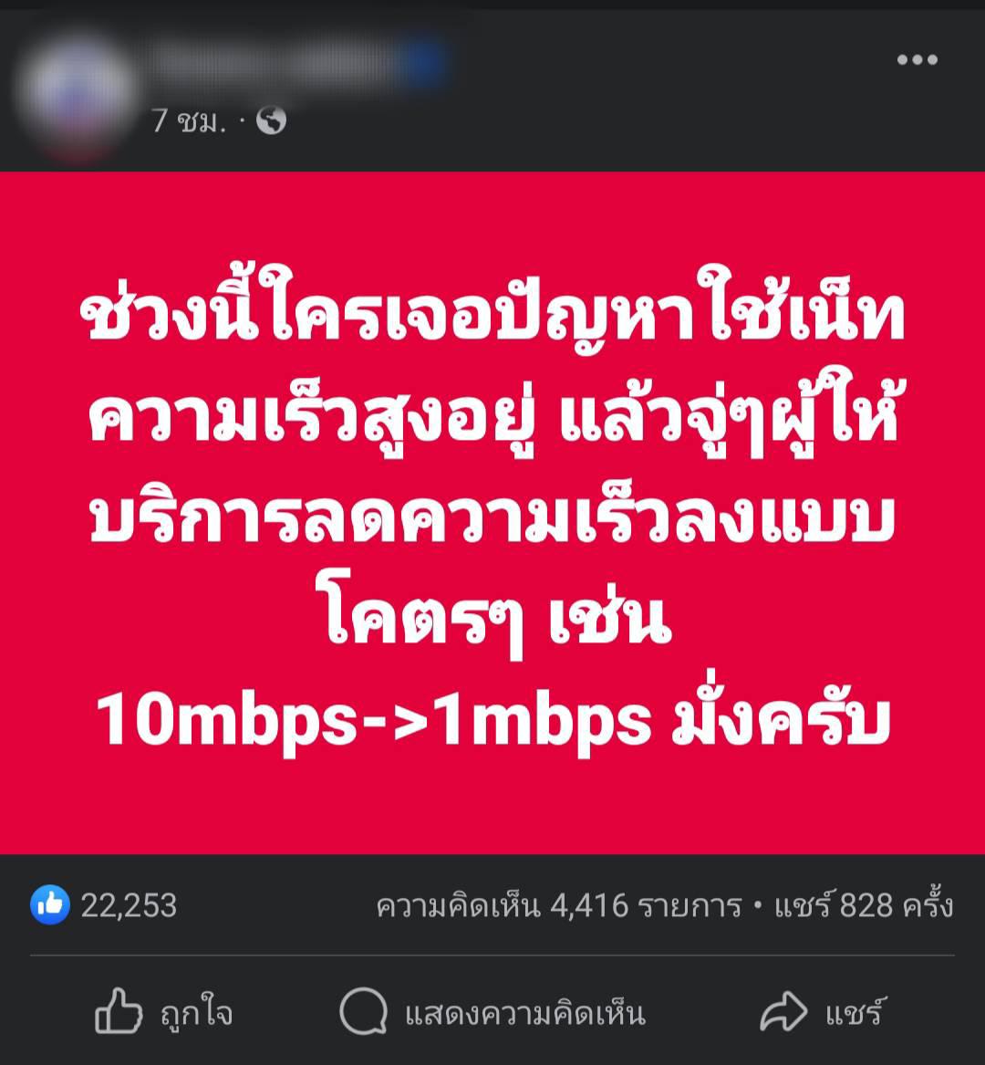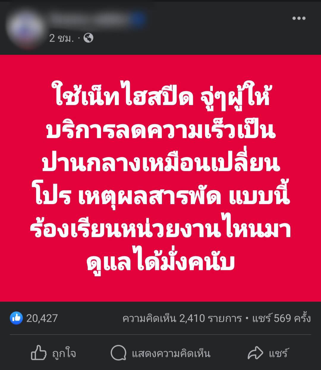 ลูกค้าหลายรายบ่นความเร็วเน็ตลดฮวบมาก
