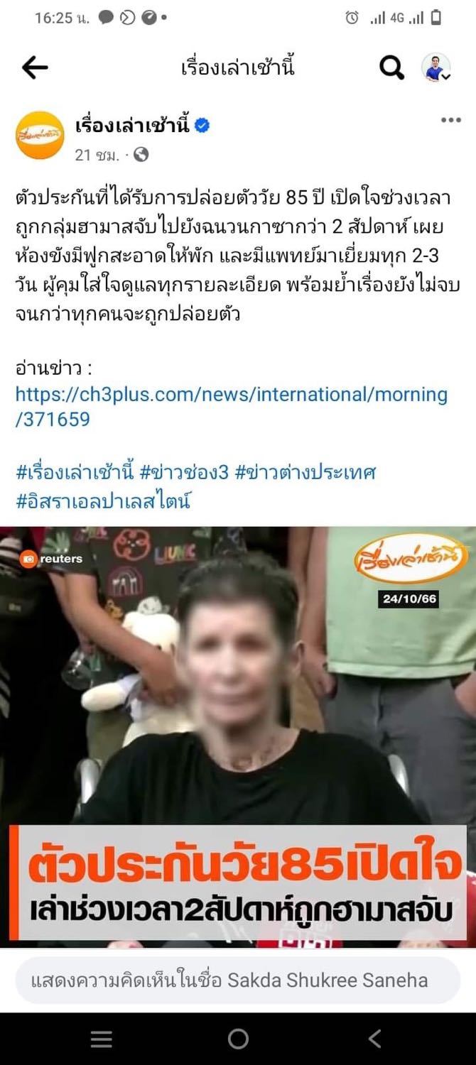 ตัวประกัน กล่าวเอง ฮามาสดูแลดี-ไม่ทำร้าย ไม่ละเมิด แฉสื่อรัฐบาลอิสราเอลโกหกชาวโลก
