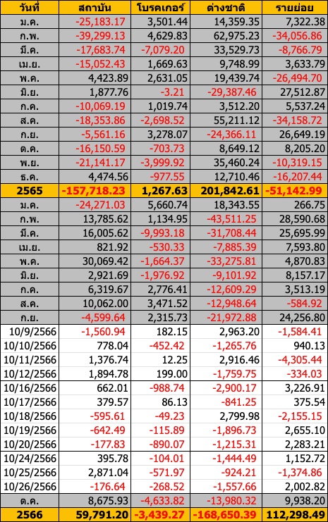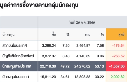 Sinthorn Summary 26/10/2566 : ต่างชาติขายสุทธิ -1,557.66 ลบ.