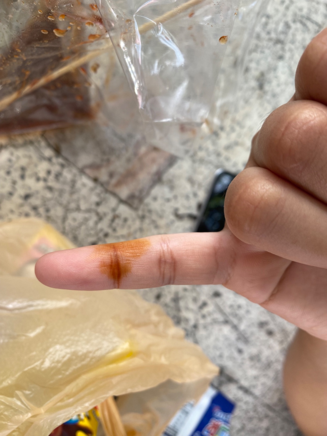 นิ้วเป็นสีส้มๆ เหมือนเลือกออกข้างใน