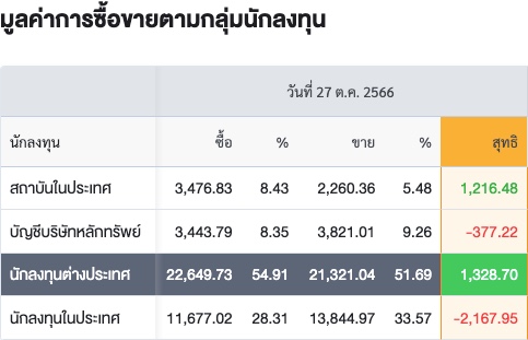 Sinthorn Summary 27/6/2566 : ต่างชาติซื้อสุทธิ 1,328.70 ลบ.