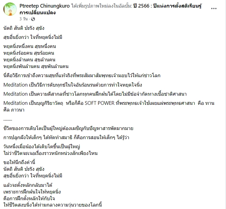 นี้ก็จะเป็นประวัติศาสตร์ทางใจของเด็กๆเหล่านี้ ได้อ่าน FB ของ พระ Ptreetep Chinungkuro ก็เข้าใจไนความปรารถนาดี