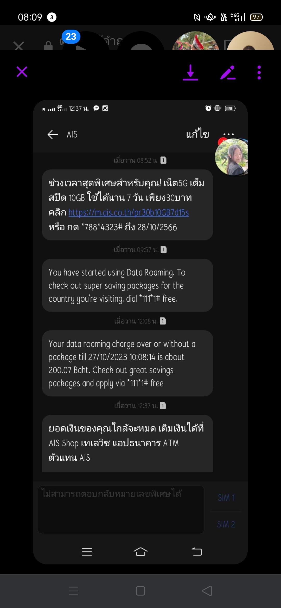 อันนี้เป็นข้อความในเครื่องพี่สาวค่ะ