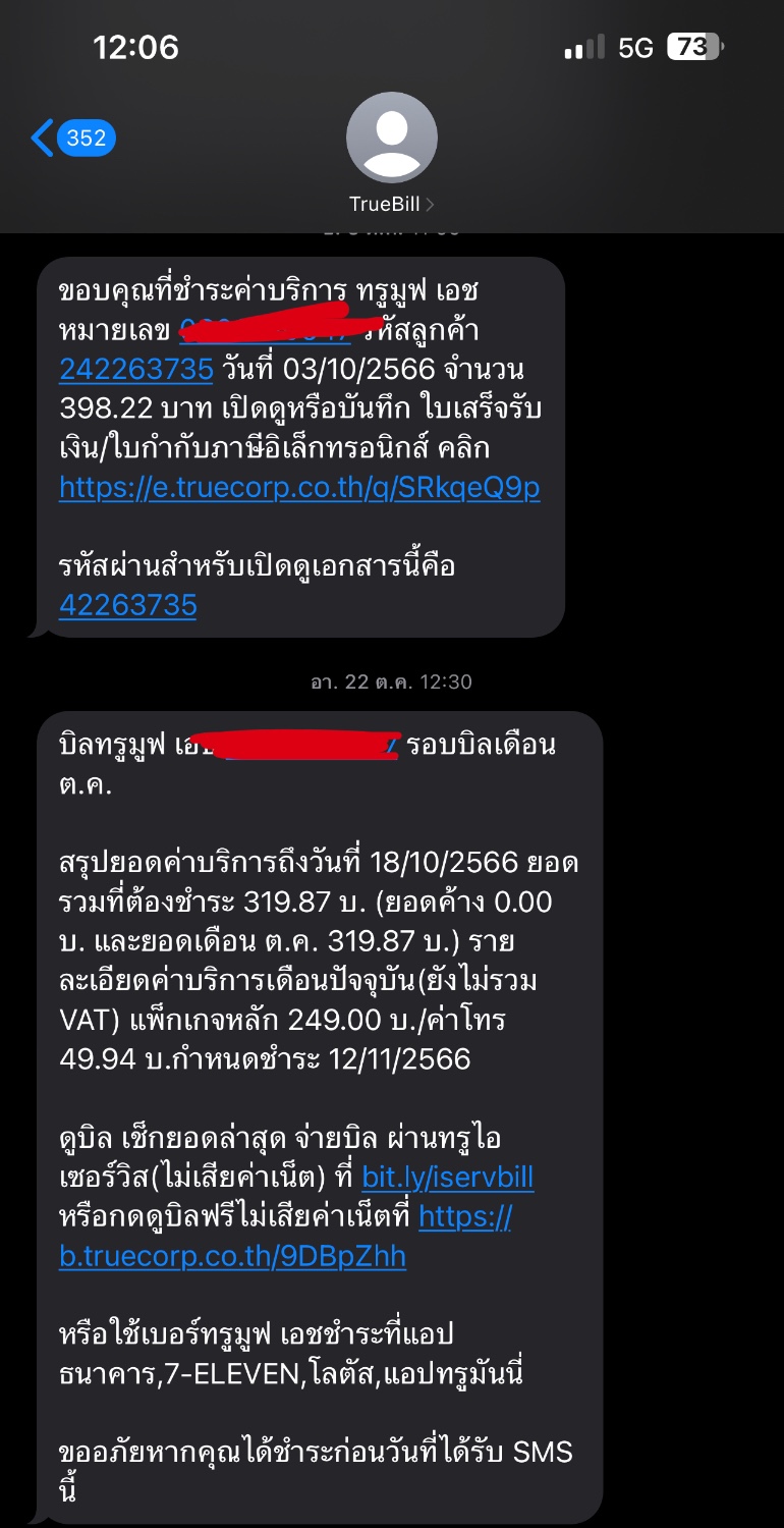 เราใช้ทรูมา 6-7 ปีแล้ว รู้สึกว่าตัวเองเป็นลูกค้าที่ซื่อสัตย์กับทรูมาโดยตลอด จนช่วงหนึ่งเราได้เปลี่ยน package ทรูลดลงเหลือราคา 199 บาทต่อเดือน แต่ปัจจุบันมีการเรียกเก็บเงิน 300 กว่าบาท เรียกเก็บในราคานี้มาเป็นเวลาหลายเดือน เราคิดว่าเป็นเราที่โทรนอกเครือข่ายมากเกินไป หลังๆมานี้เรารู้สึกว่าไม่ใช่โปรโมชั่นที่เราสมัครในตอนแรกและเน็ตก็ช้ามาก แต่สุดท้ายมาทราบว่าทางค่ายเปลี่ยน package โดยไม่โทรบอกเรา มีข้อความเพียงแค่ไม่กี่ข้อความเท่านั้นที่ส่งมาแจ้งเตือน ว่าจะเปลี่ยน package เน็ตของเราเป็นอันนี้(แต่เราไม่เห็น) ใน 1วันการแจ้งเตือนบนหน้าจอของเราเยอะมากเราก็ไม่สามารถดูได้ทั่วถึง ซึ่งไม่เข้าใจว่าทำไมตอนทรูจะขายสัญญาณติดตั้งอินเตอร์เน็ตบ้านหรือจานดาวเทียมถึงโทรมาได้แต่เปลี่ยนpackage ให้เราอัตโนมัติถึงโทรมาแจ้งเราไม่ได้