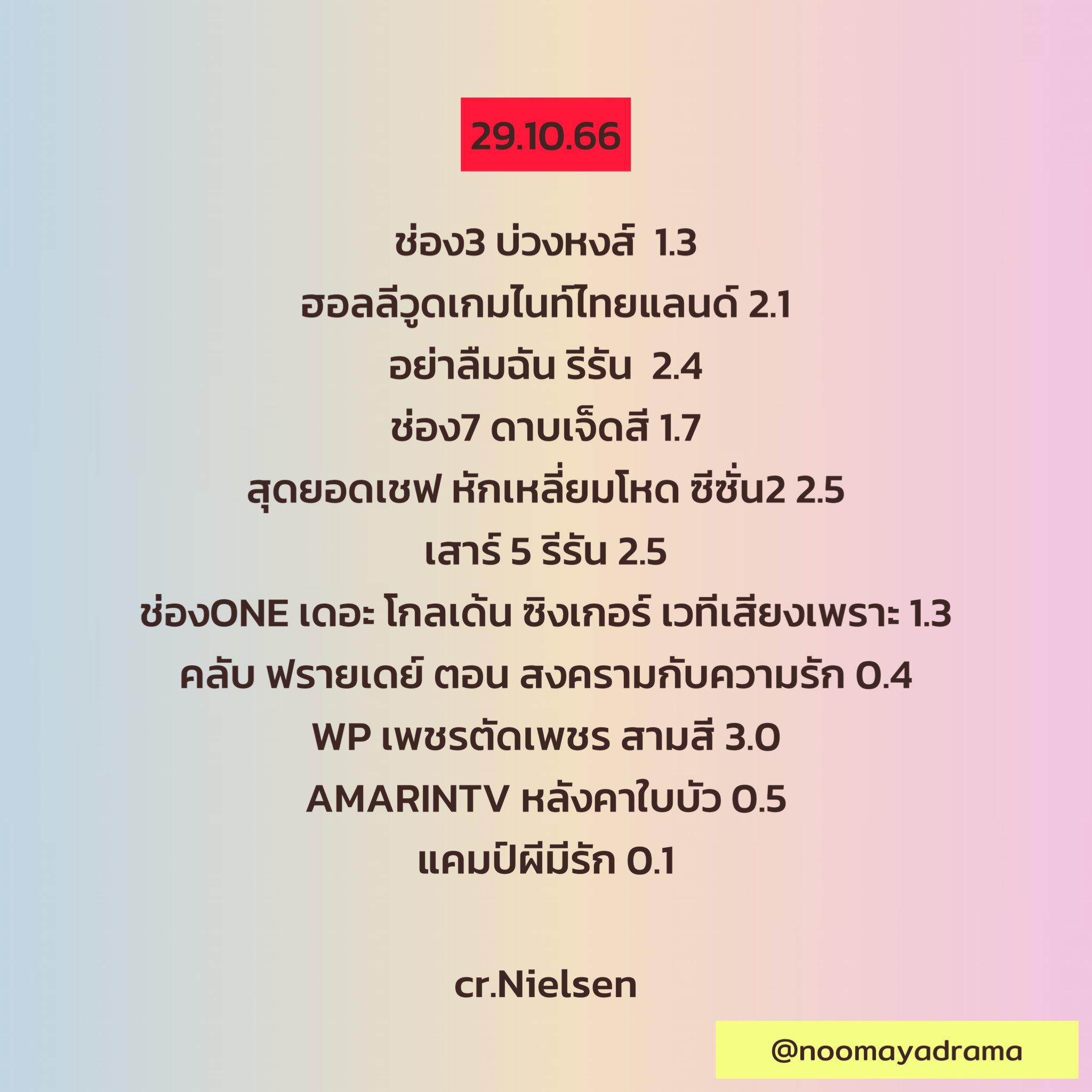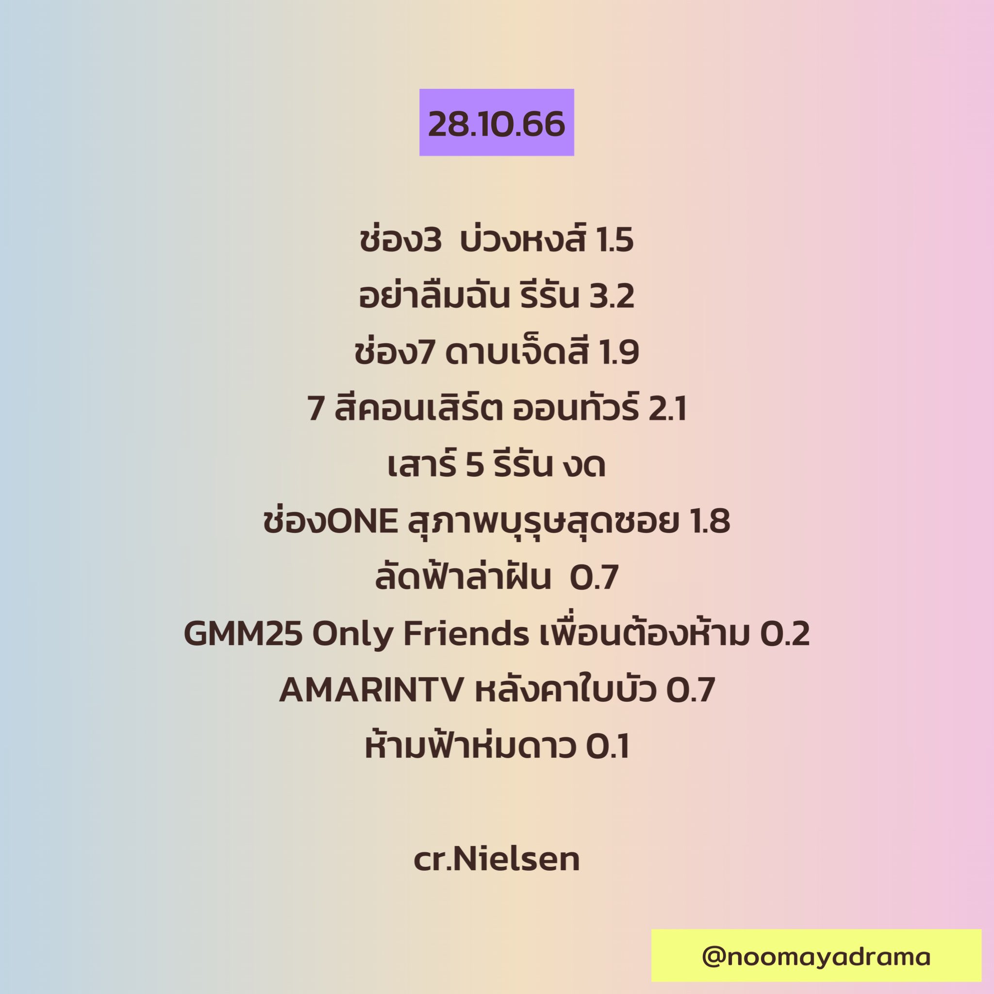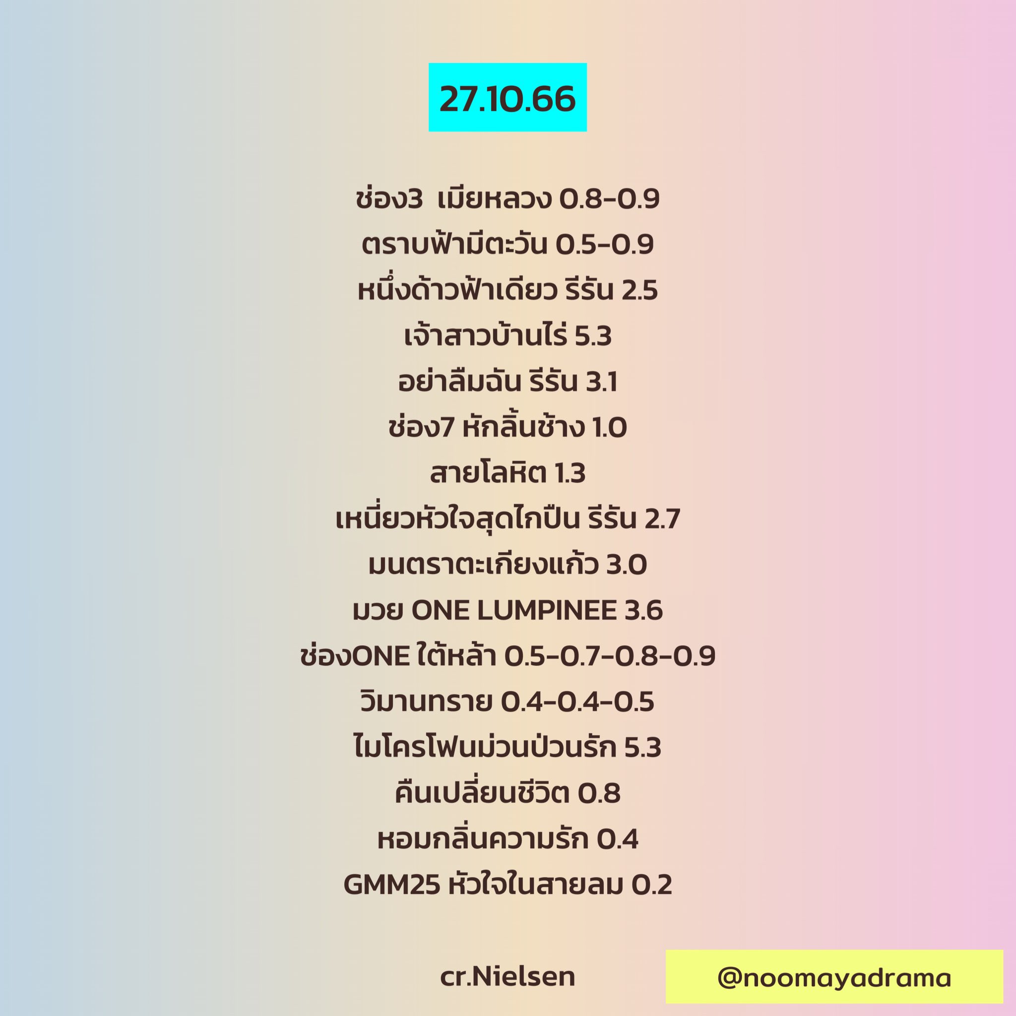 📌 เรตติ้งทีวีดิจิทัลข้ามแพลตฟอร์ม ประจำเดือนตุลาคม 2568 🏆 อันดับ 1 คือ ช่อง 3 - 0.976 🎉🎉🎉
