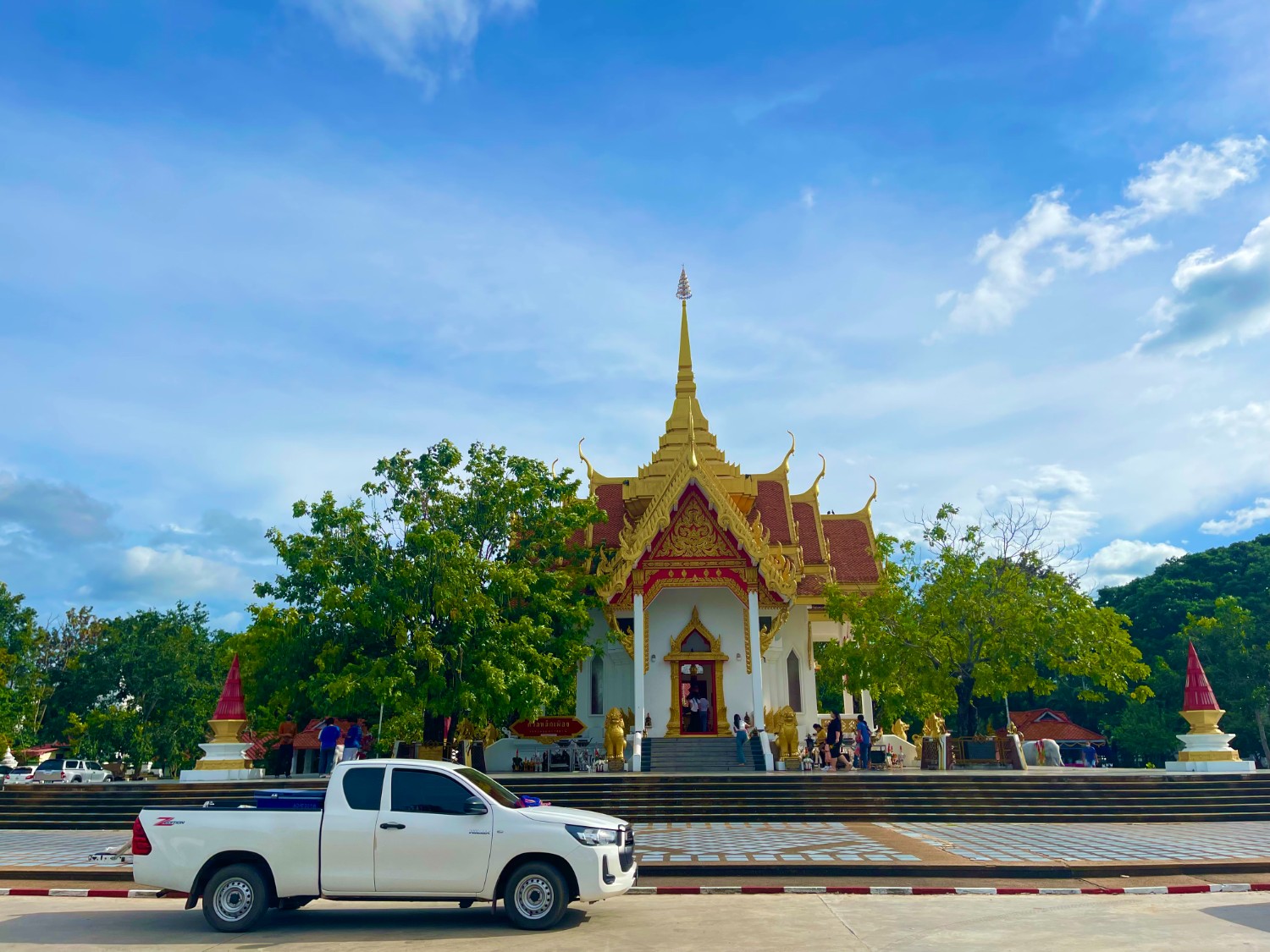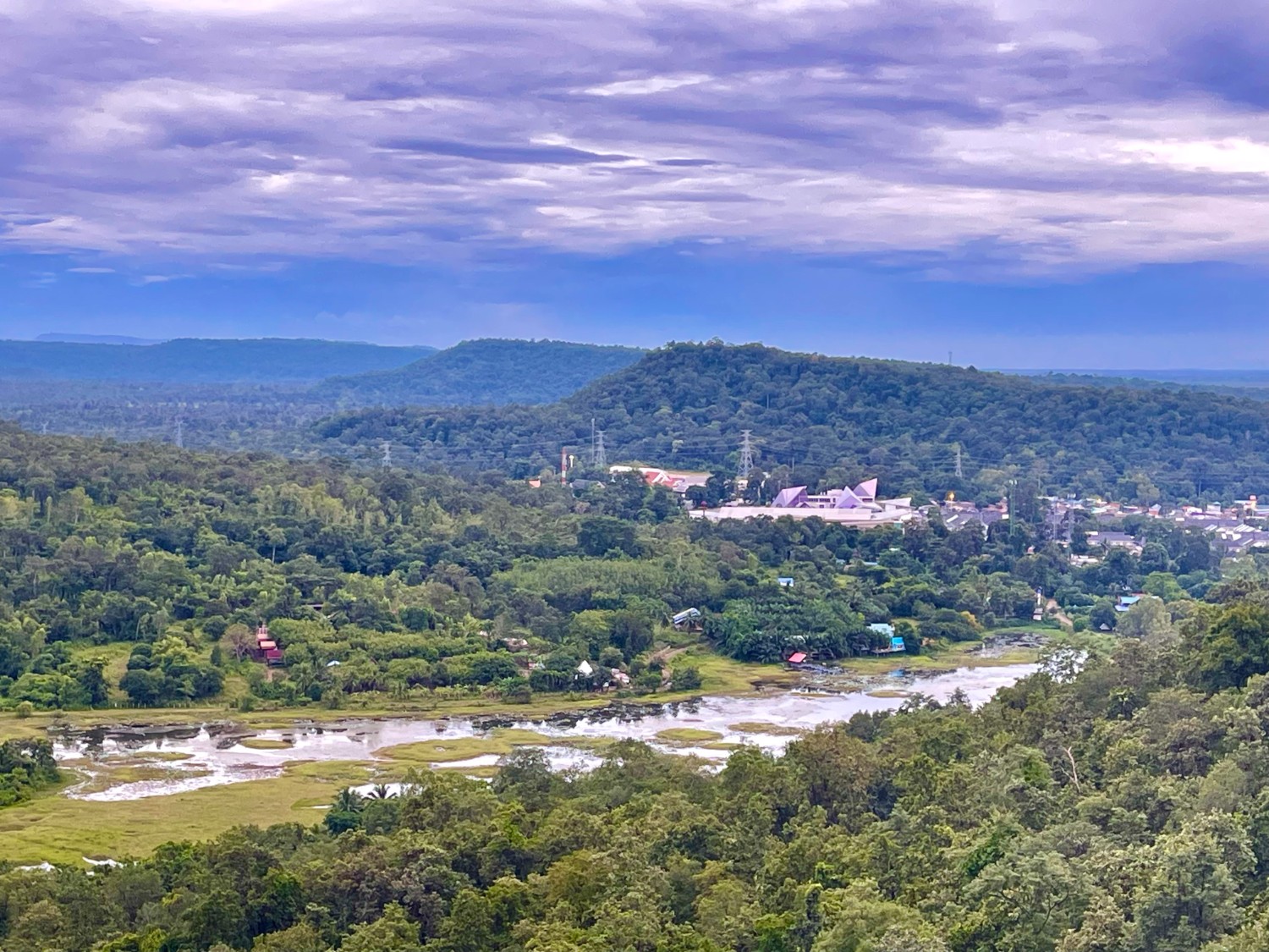 หลังจากได้พลังจากข้าวจี่กันแล้ว เราดั้นด้นขึ้นรถขับไปอีก 70 กิโล ออกนอกเมืองอุบล มุ่งไปทาง ด่านช่องเม็ก ชายแดนติดกับประเทศลาว จนมาถึงวัด วัดสิรินธรวรารามภูพร้าว หรือวัดเรืองแสง หลังจากจอดรถเสร็จ เดินมาไม่กี่ก้าวก็จะเจอบันไดทางขึ้นของจุดชมวิว ที่ดูแปลกตาเราไม่รอช้ารีบขึ้นไปดู วิวที่สวยงามบวกกับลมเย็นพัดผ่าน ทำให้เรารู้สึกอิ่มใจขึ้นมาทันที